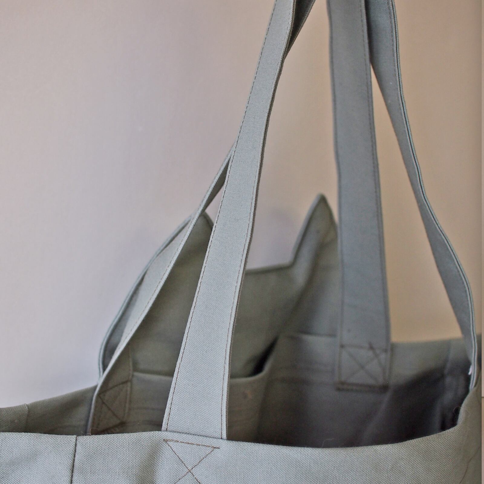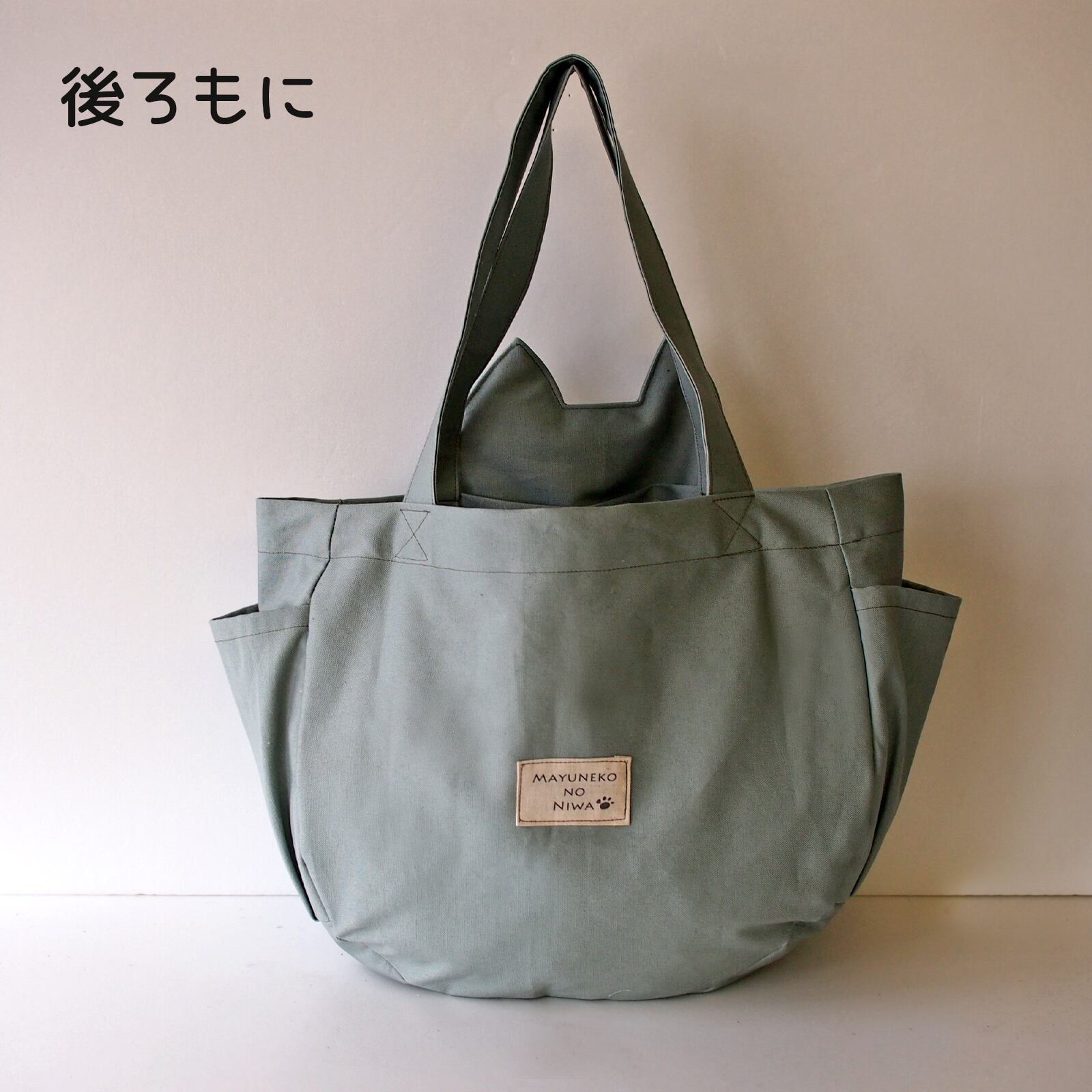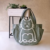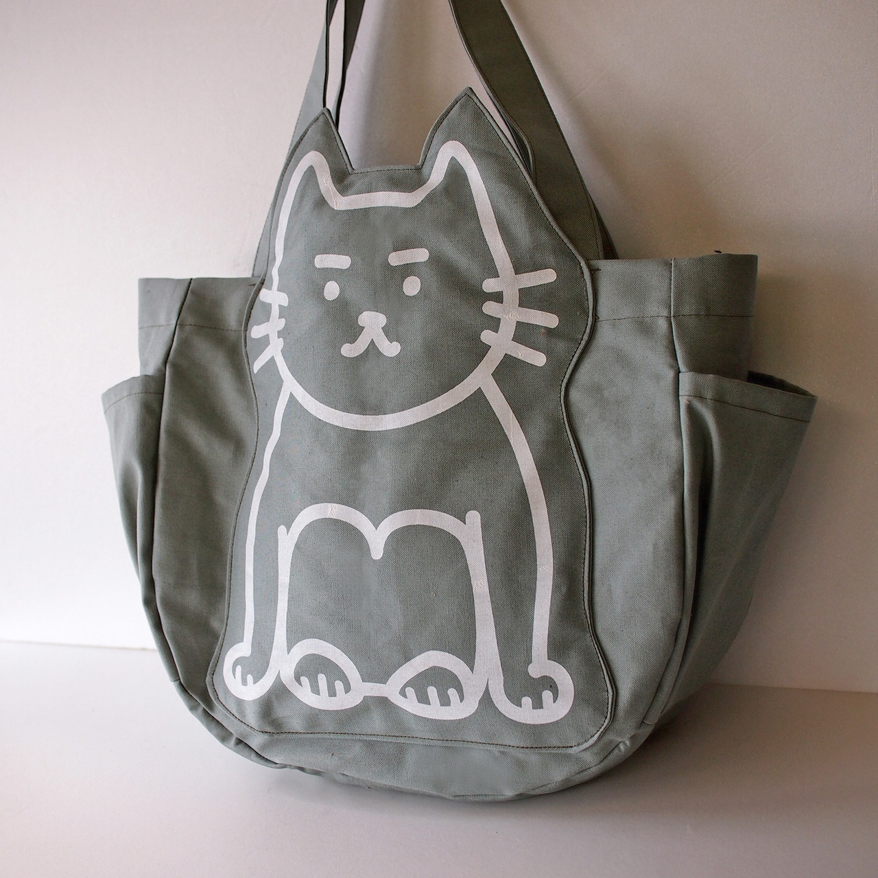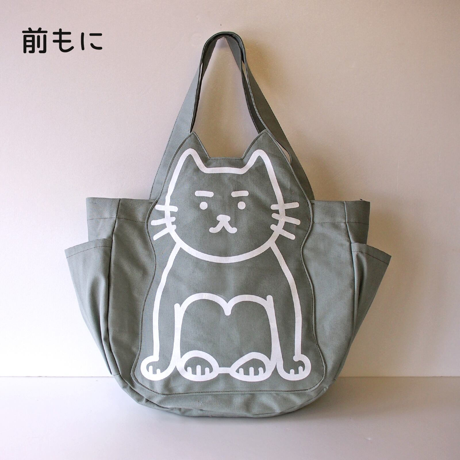 猫トートバッグ A4帆布 エコバッグ ニャンキー座り柄 モスグレー