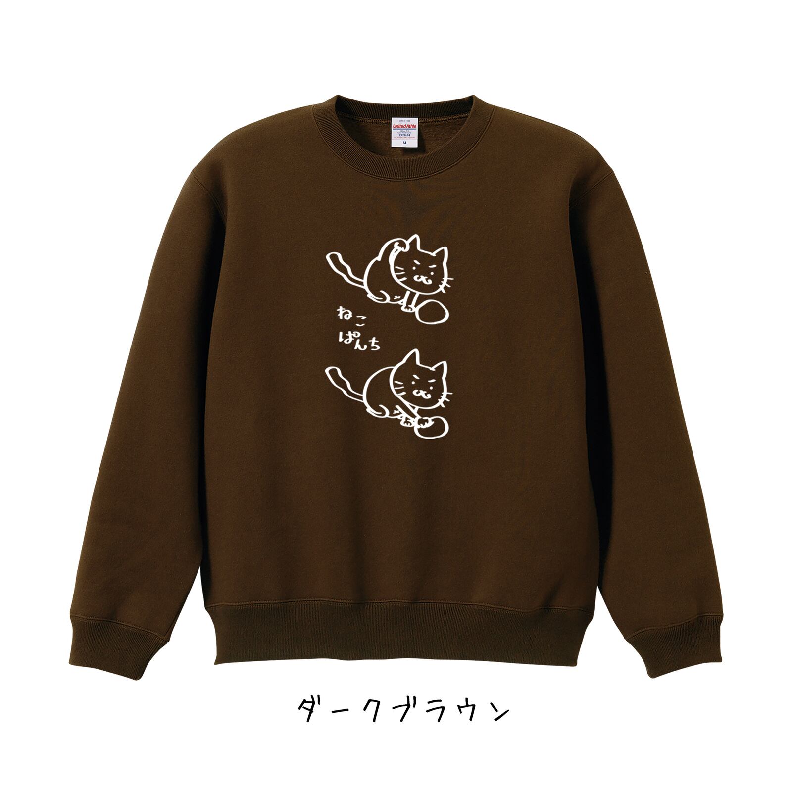 選べる8色!スウェット(裏起毛)ねこぱんち柄トレーナー ですもに