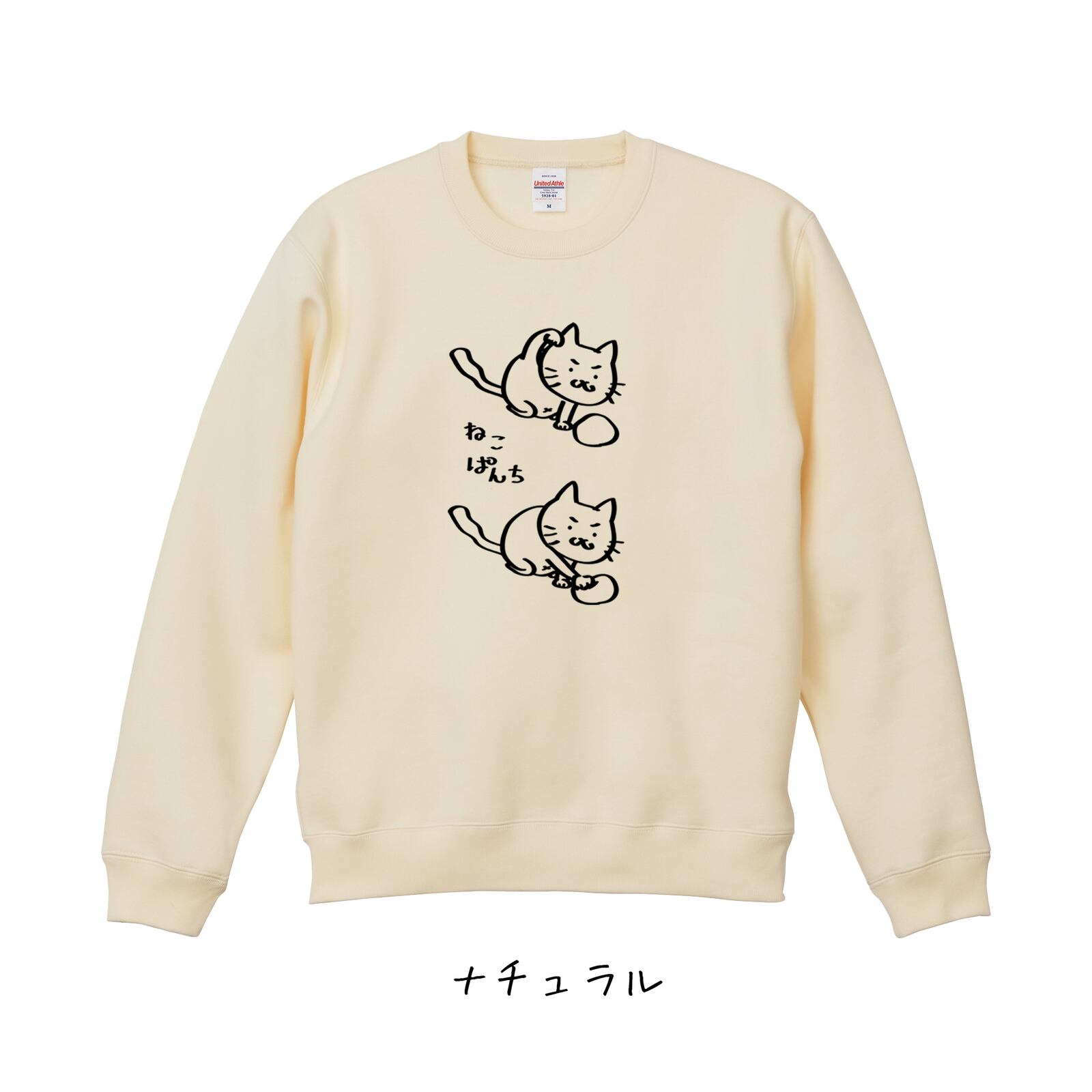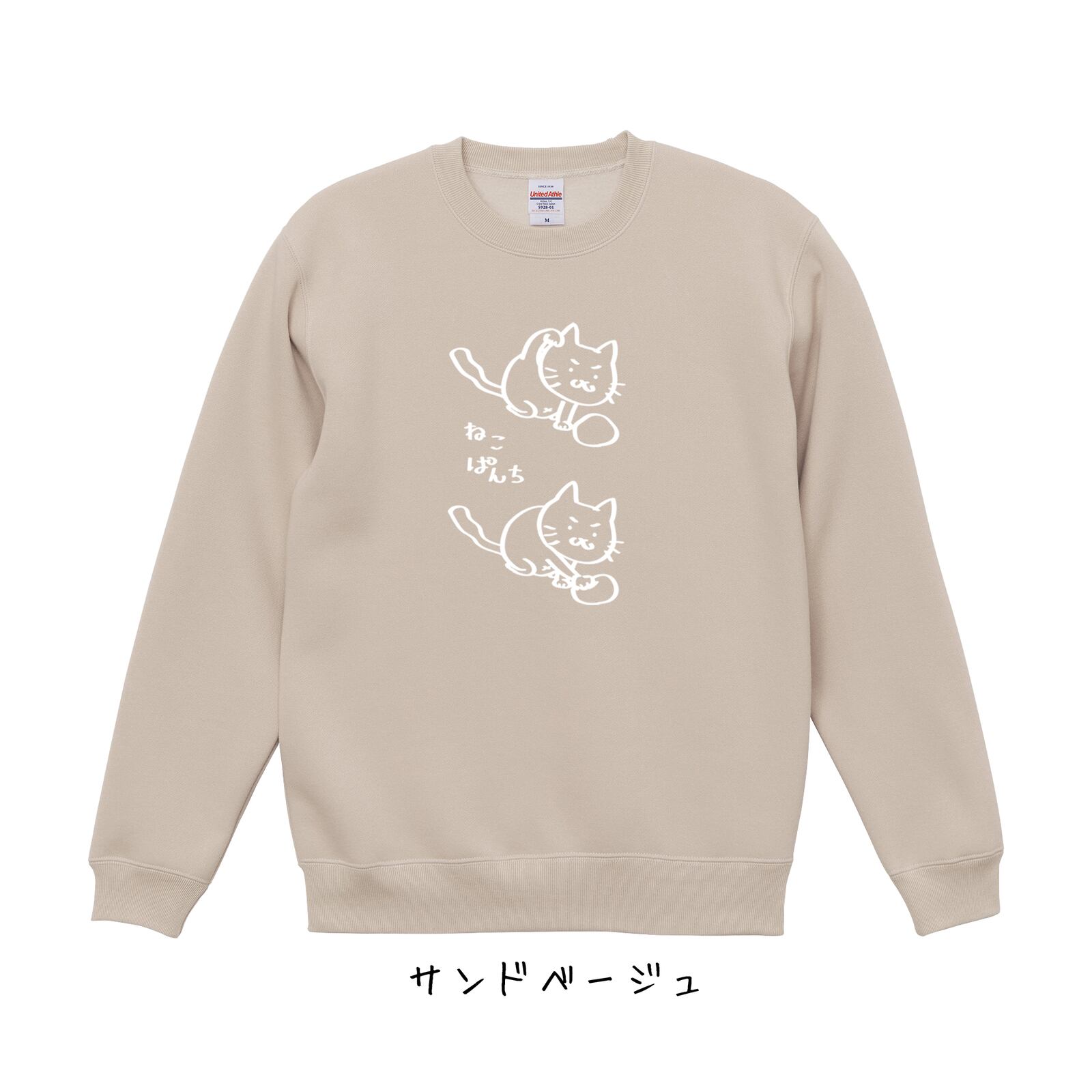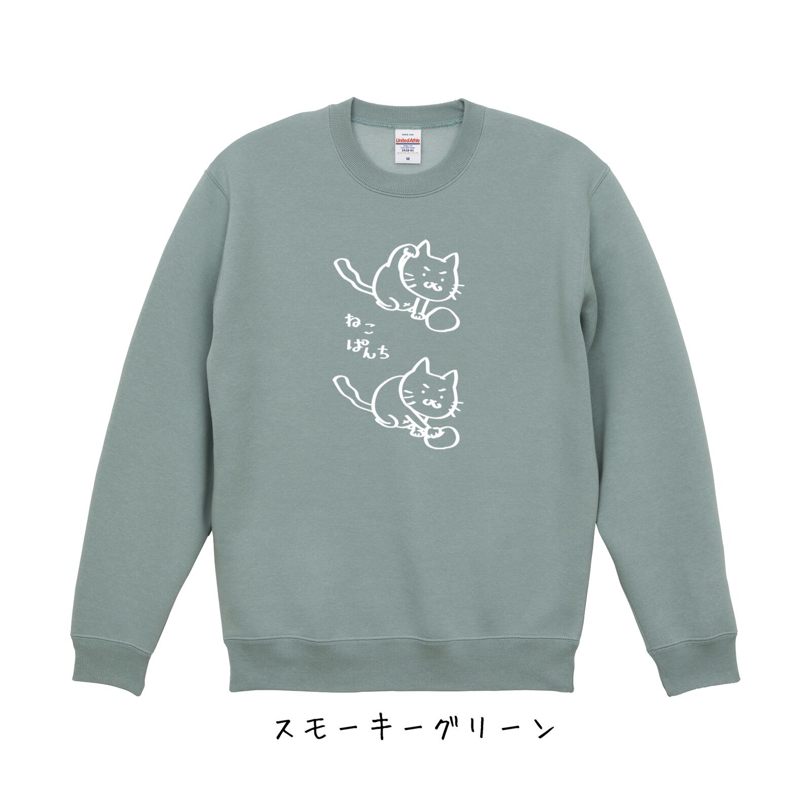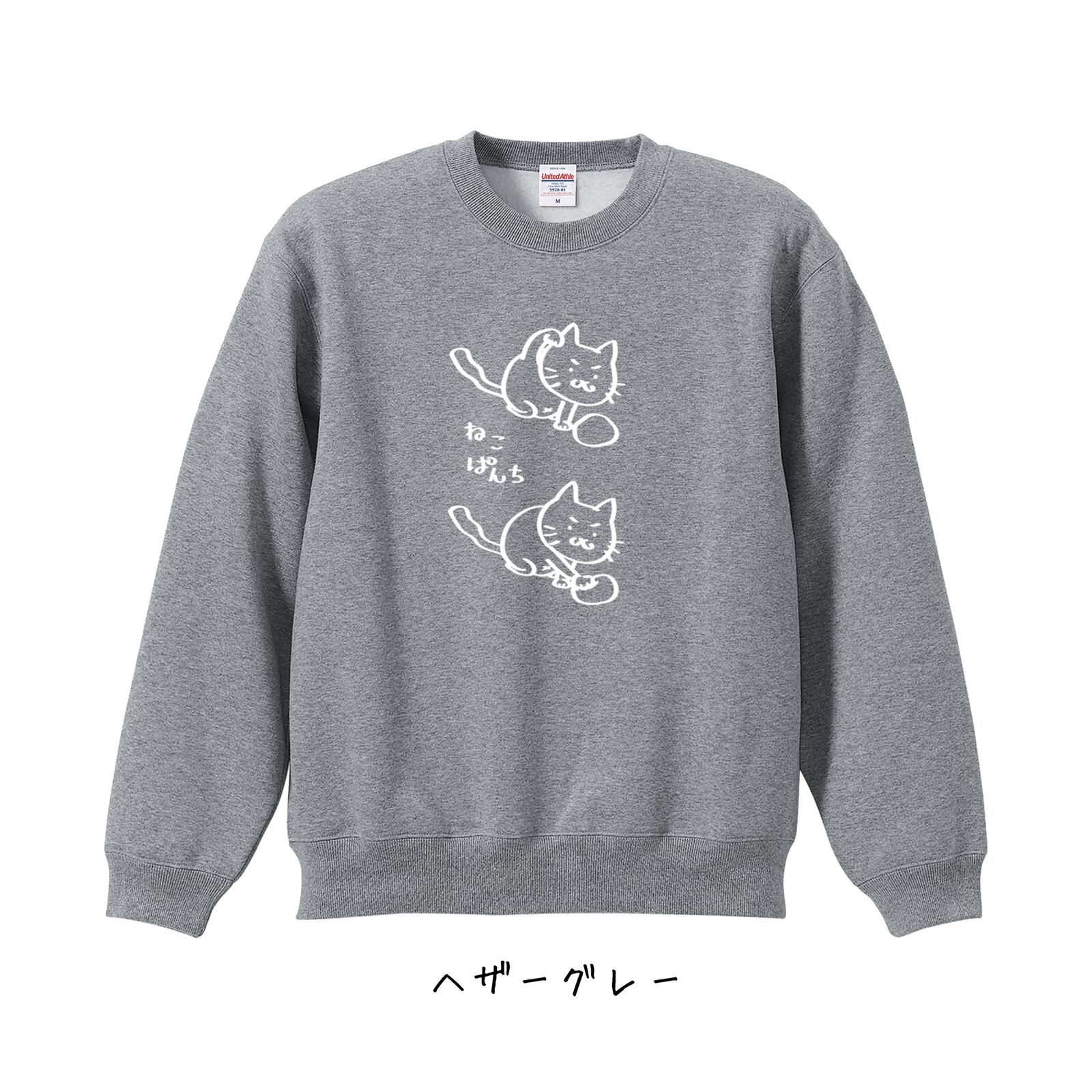 お好きなカラーとサイズのスウェットに、「ねこぱんち」をプリントするもによ