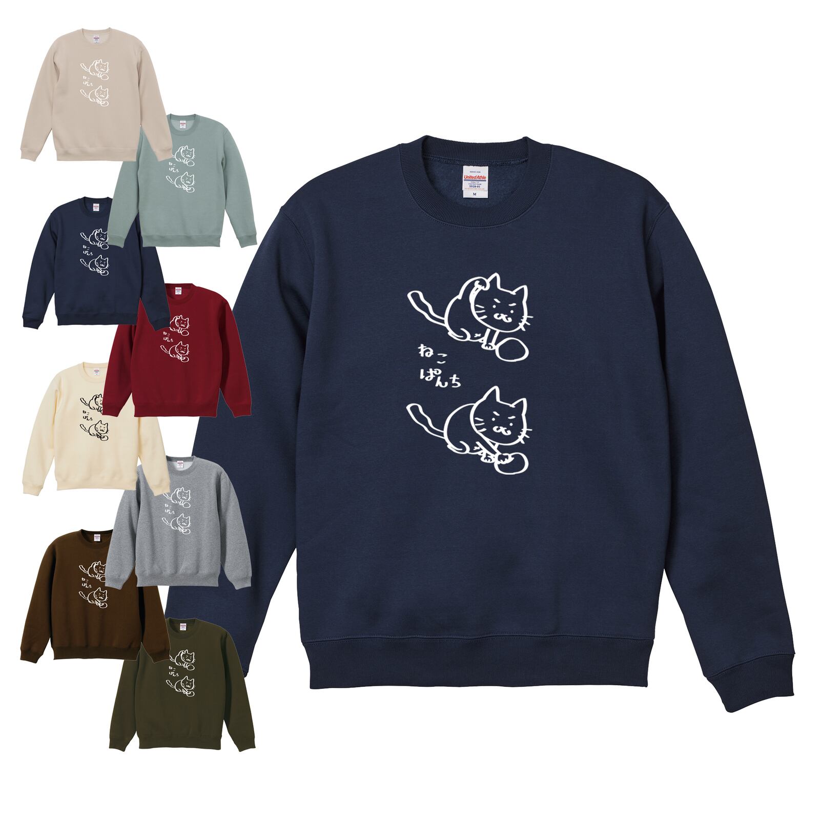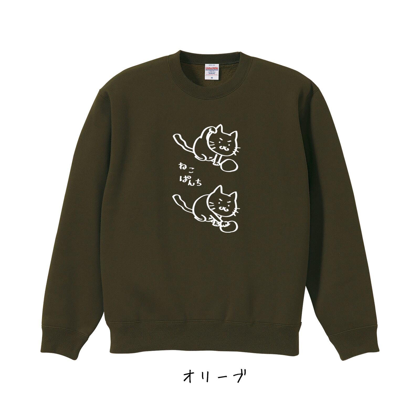 選べる8色!スウェット(裏起毛)ねこぱんち柄トレーナー 受注生産