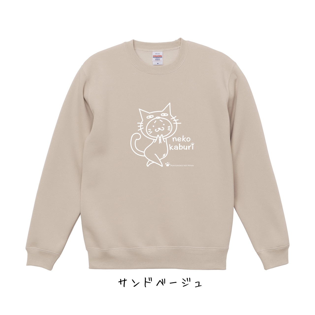 お好きなカラーとサイズのスウェットに、「ねこかぶり」をプリントするもによ