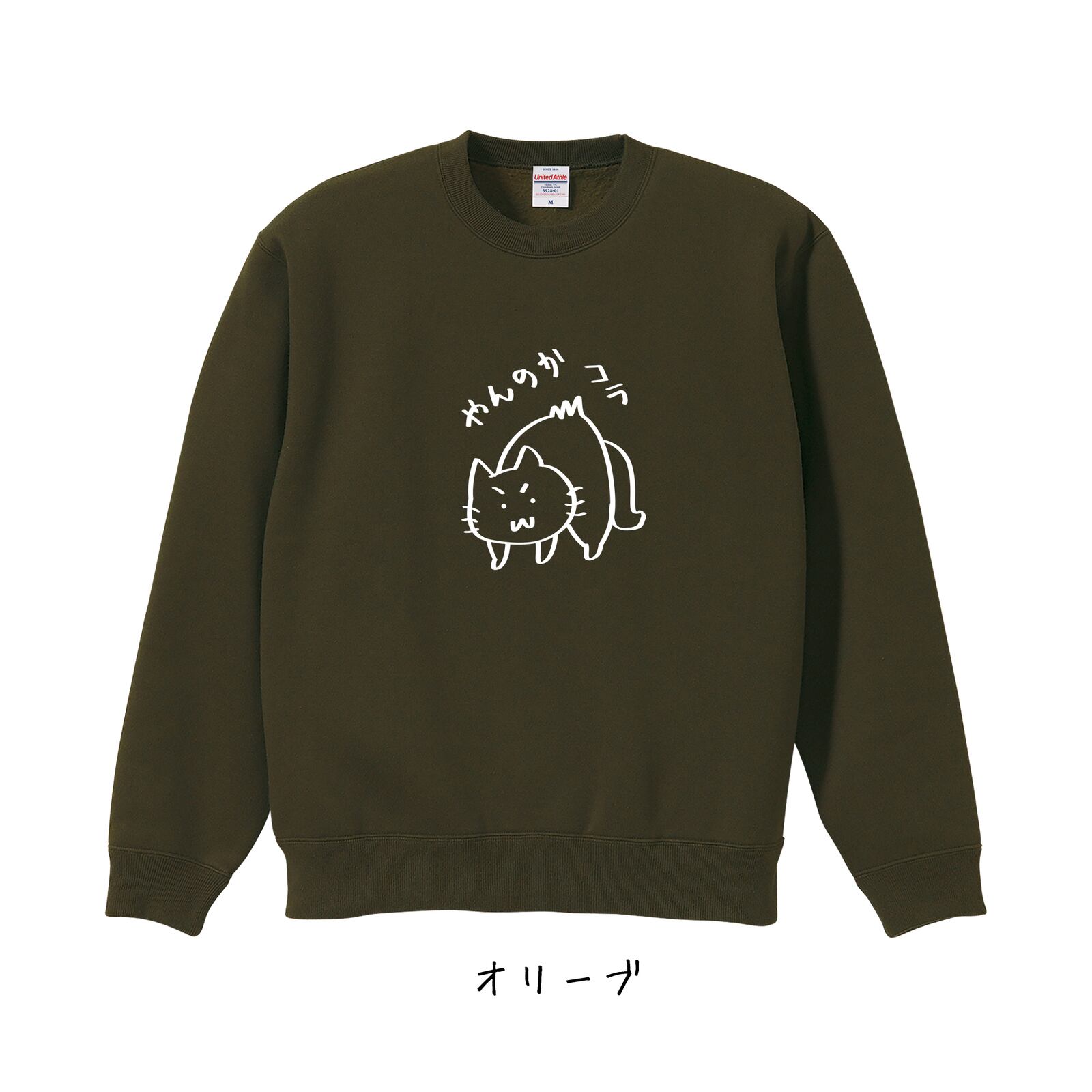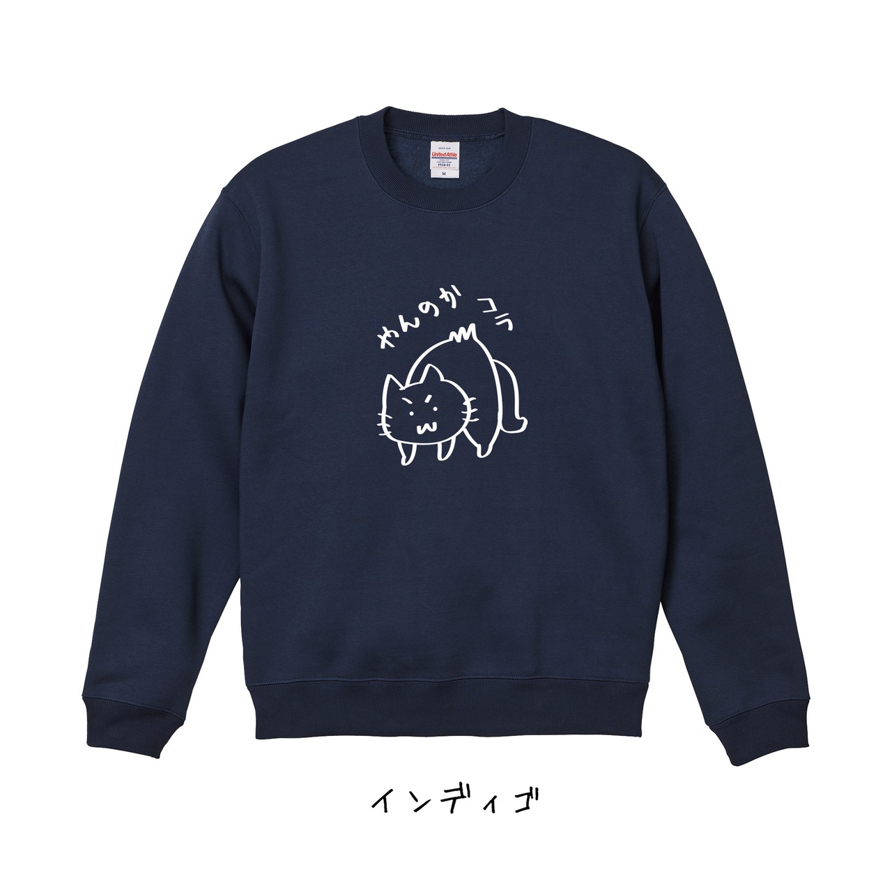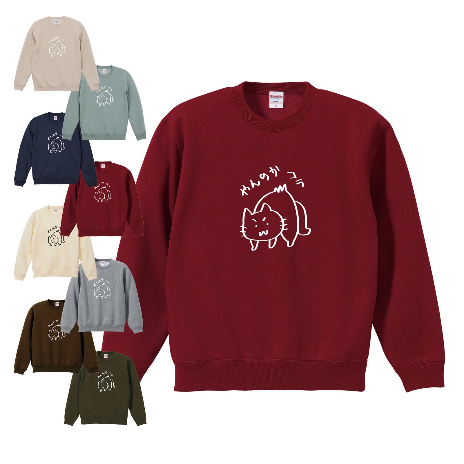 選べる8色!スウェット(裏起毛)おこりんぼ猫柄トレーナー 受注生産