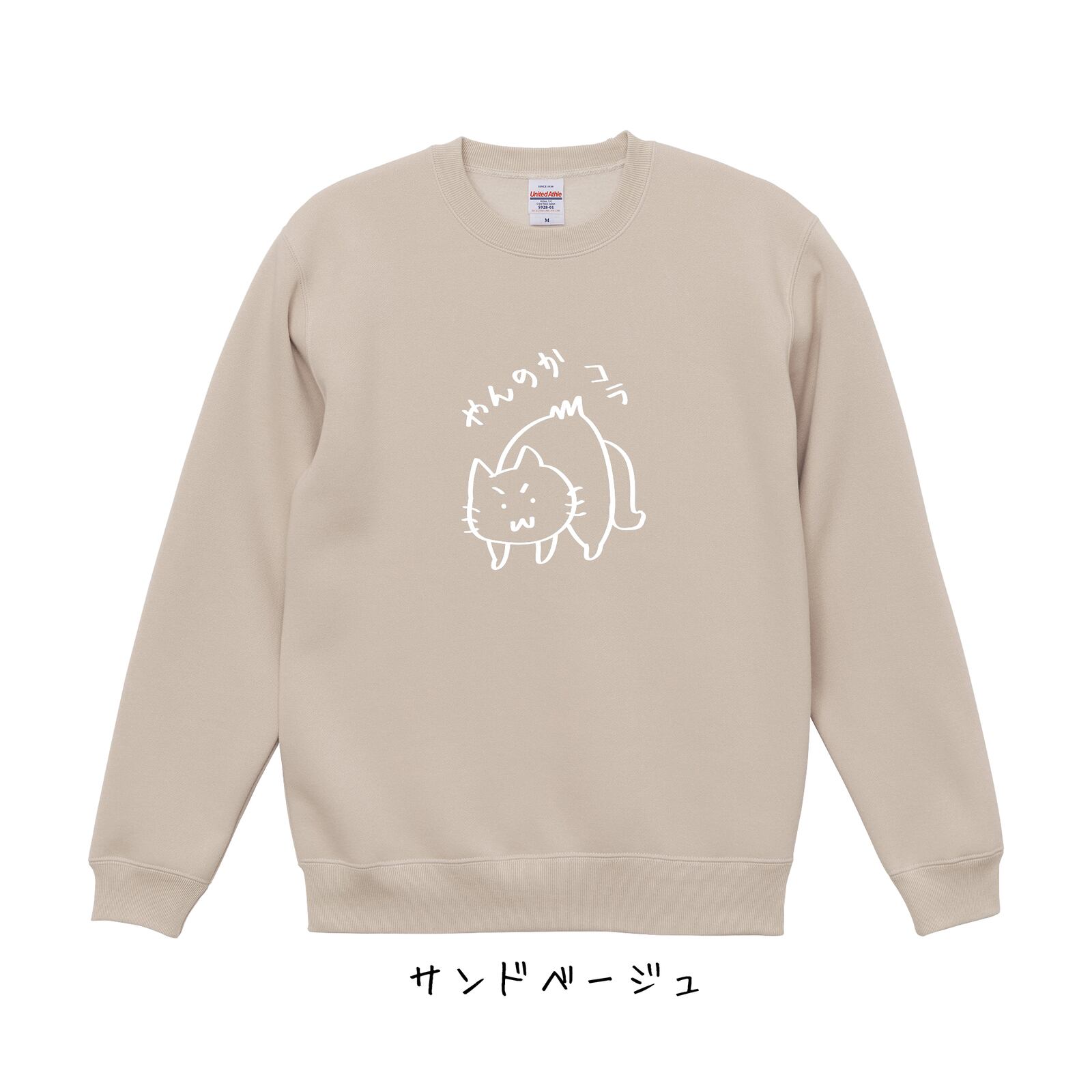 お好きなカラーとサイズのスウェットに、「おこりんぼ猫」をプリントするもによ