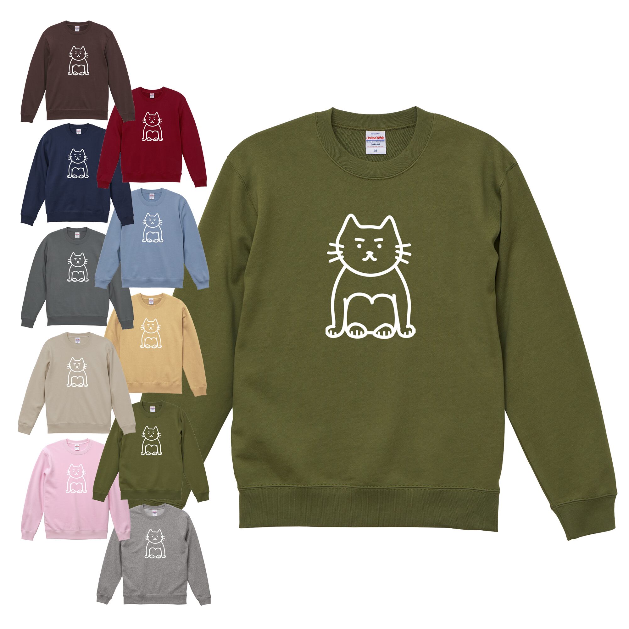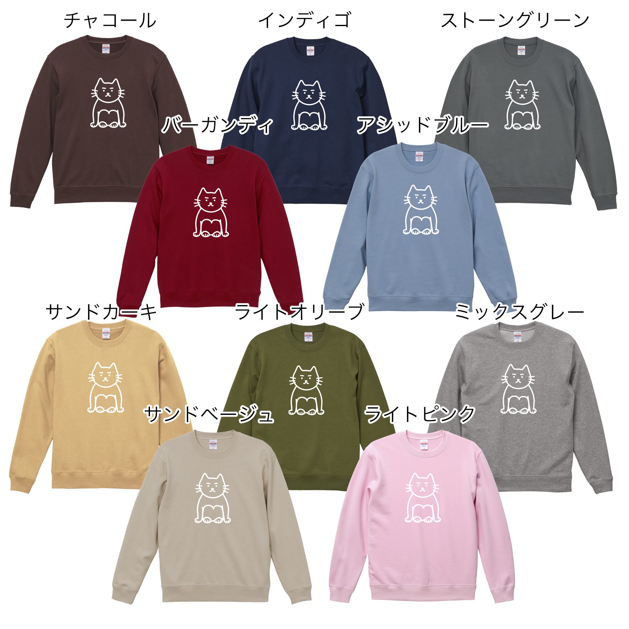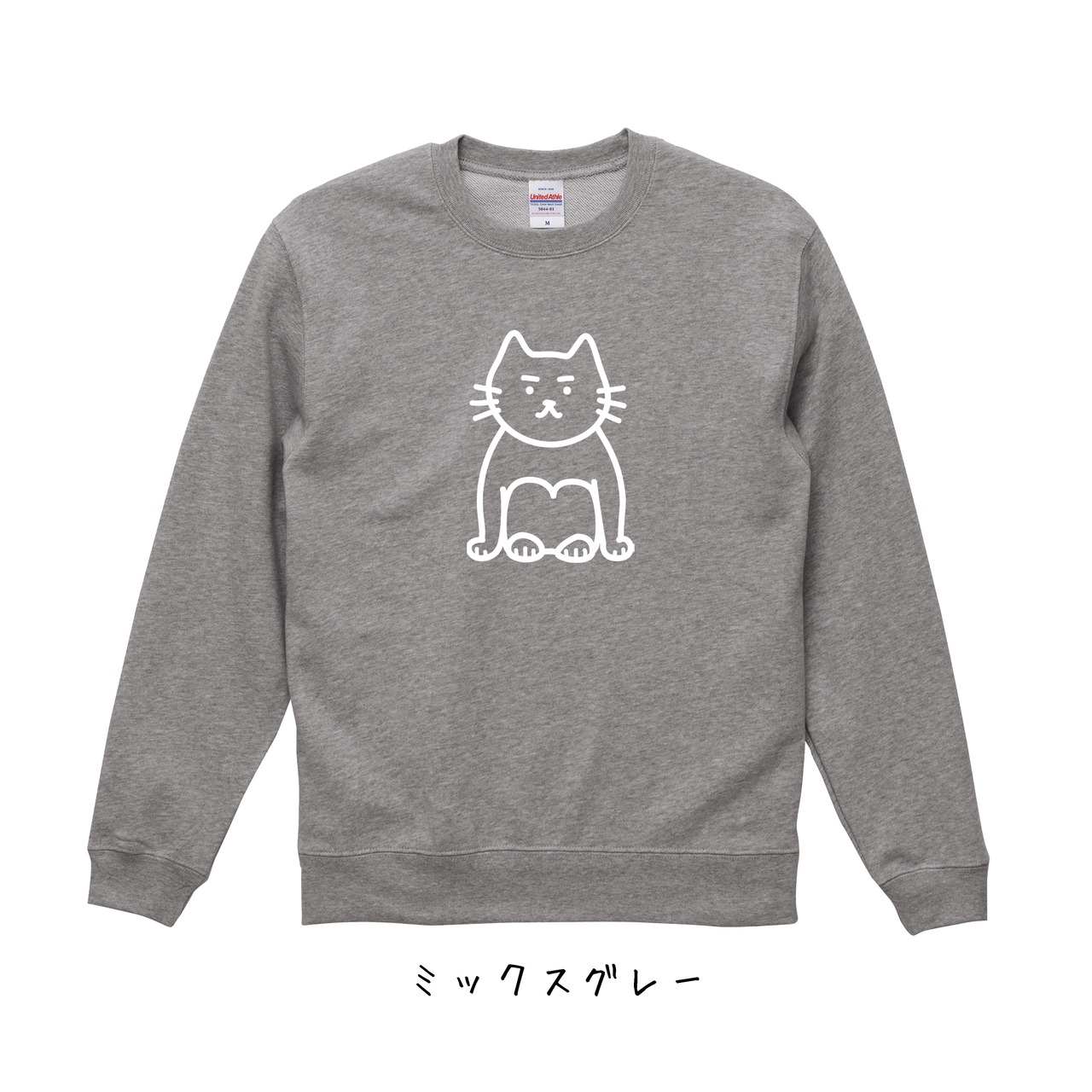選べる10色!スウェット(裏パイル)ニャンキー座り柄トレーナー 受注生産