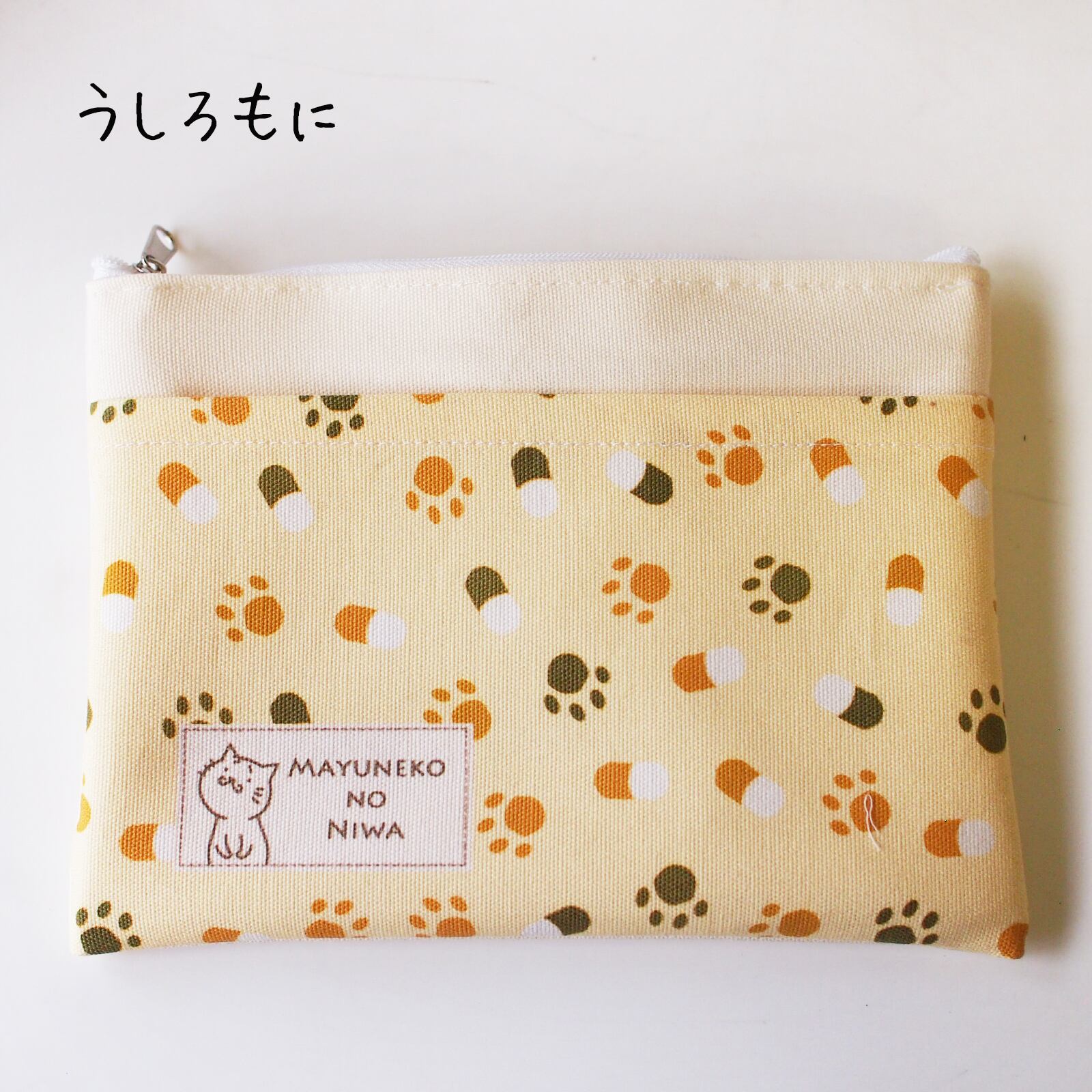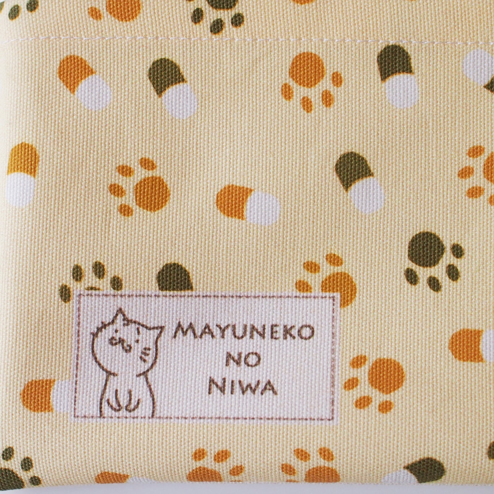 ■ 後ろのポケットはオリジナルの小さな肉球&お薬カプセル柄の生地を使いました。タグは印刷になります