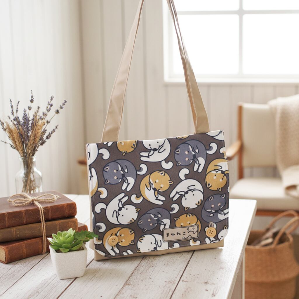 特許出願中 ぴたキャパトートバッグ 柴犬ブラウン サイズ変更ができるエコバッグ
