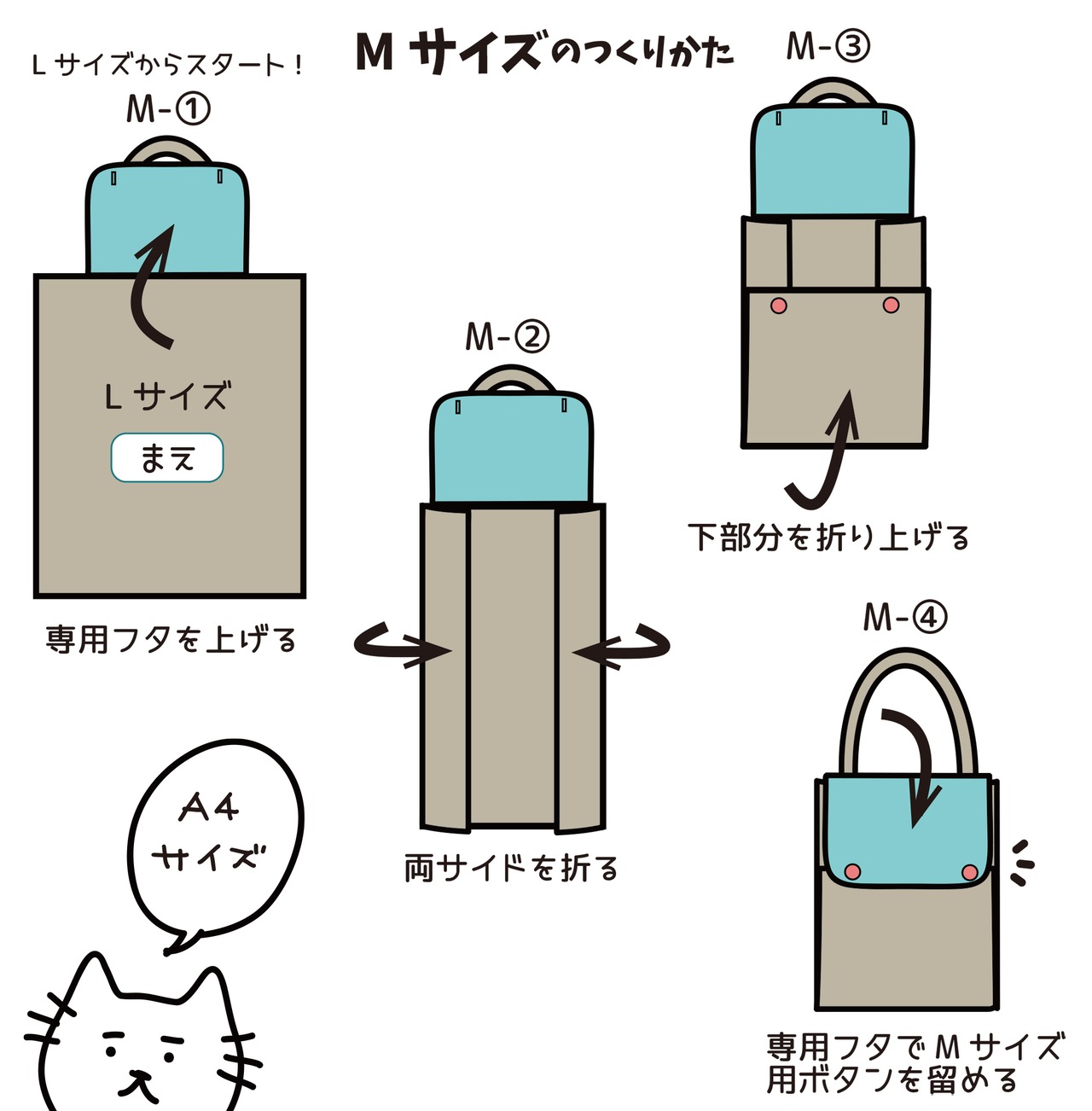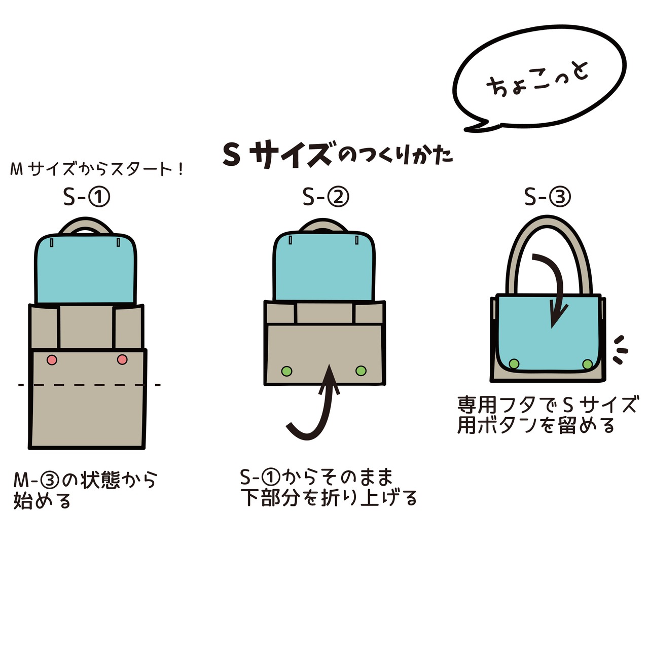 ②どんな大きさに変えても、可愛いトートバッグ形状でお使いいただけます。