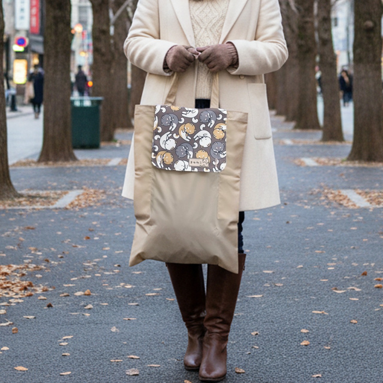 大きさが自由に変わる不思議エコバッグ ぴたキャパトート 柴犬ブラウン