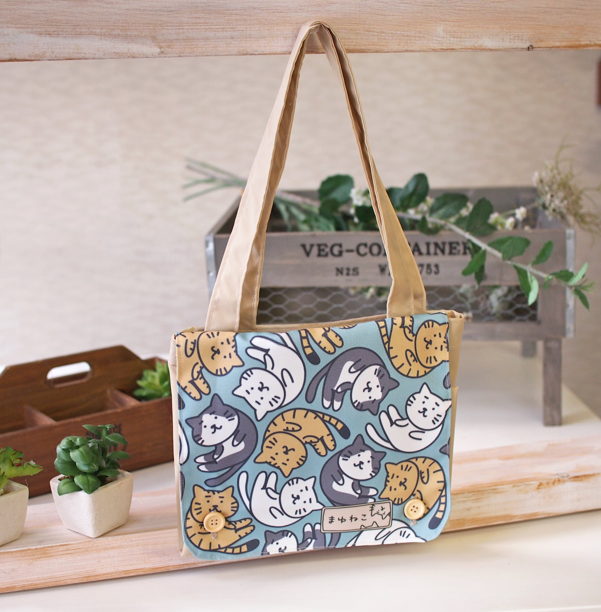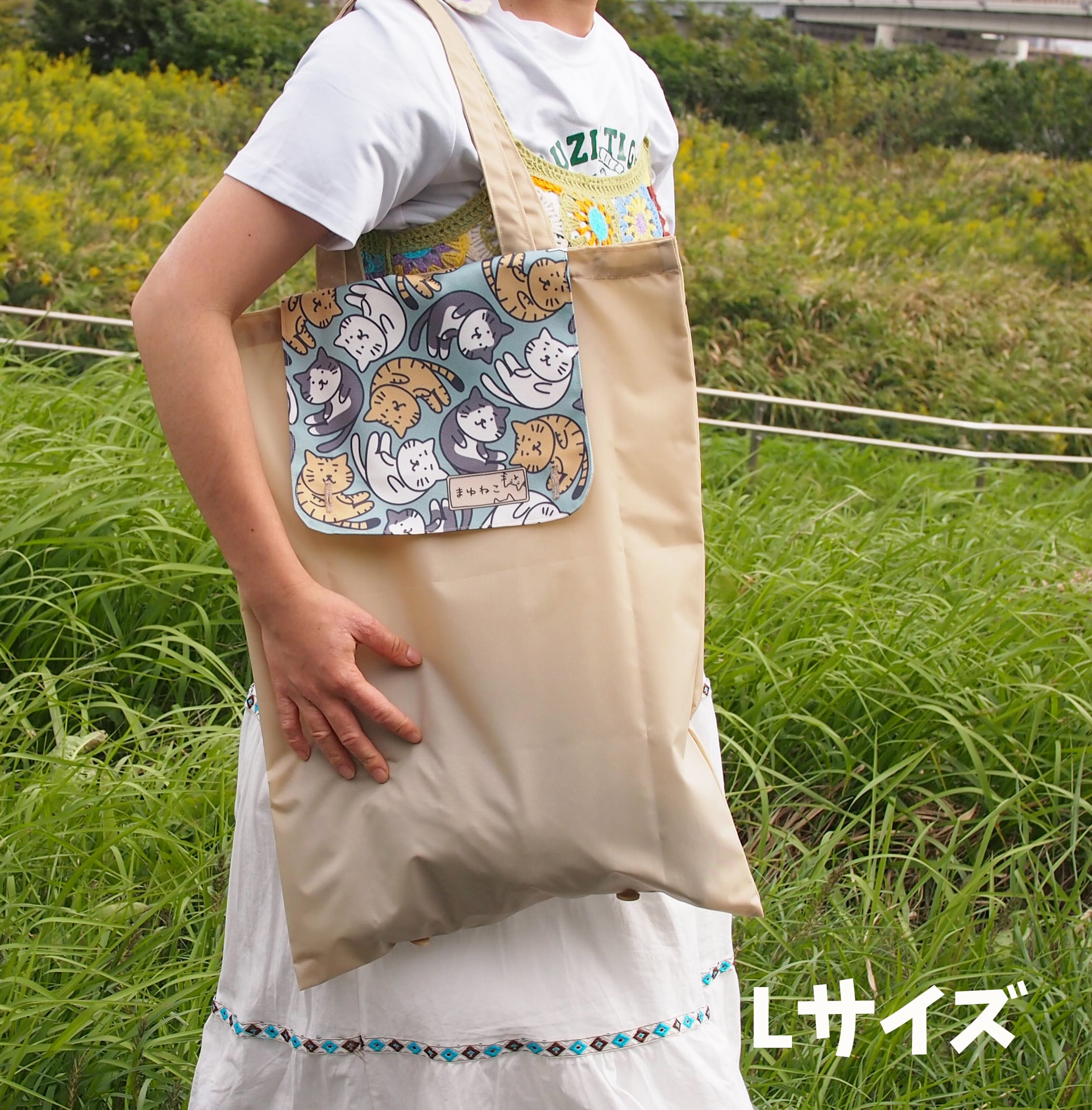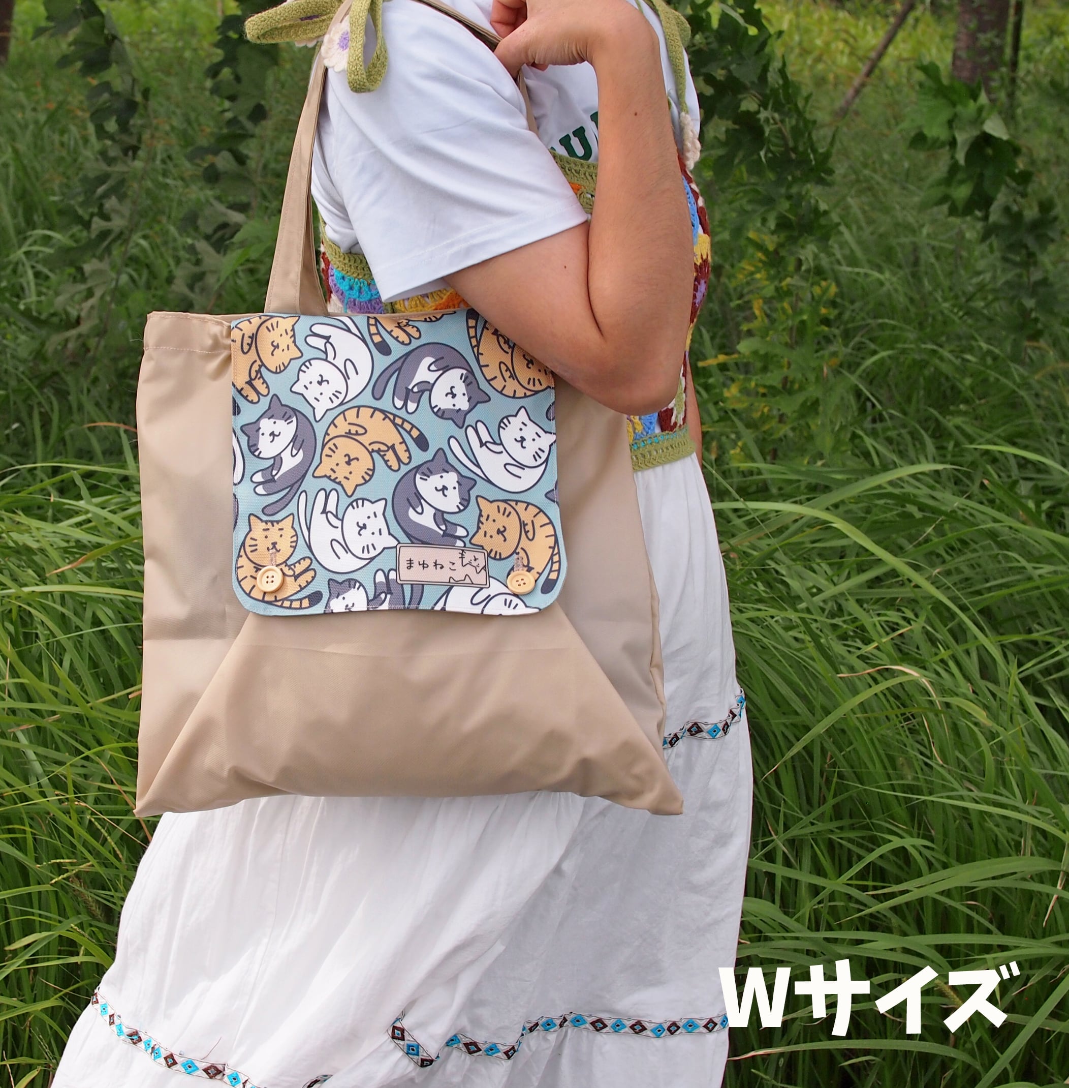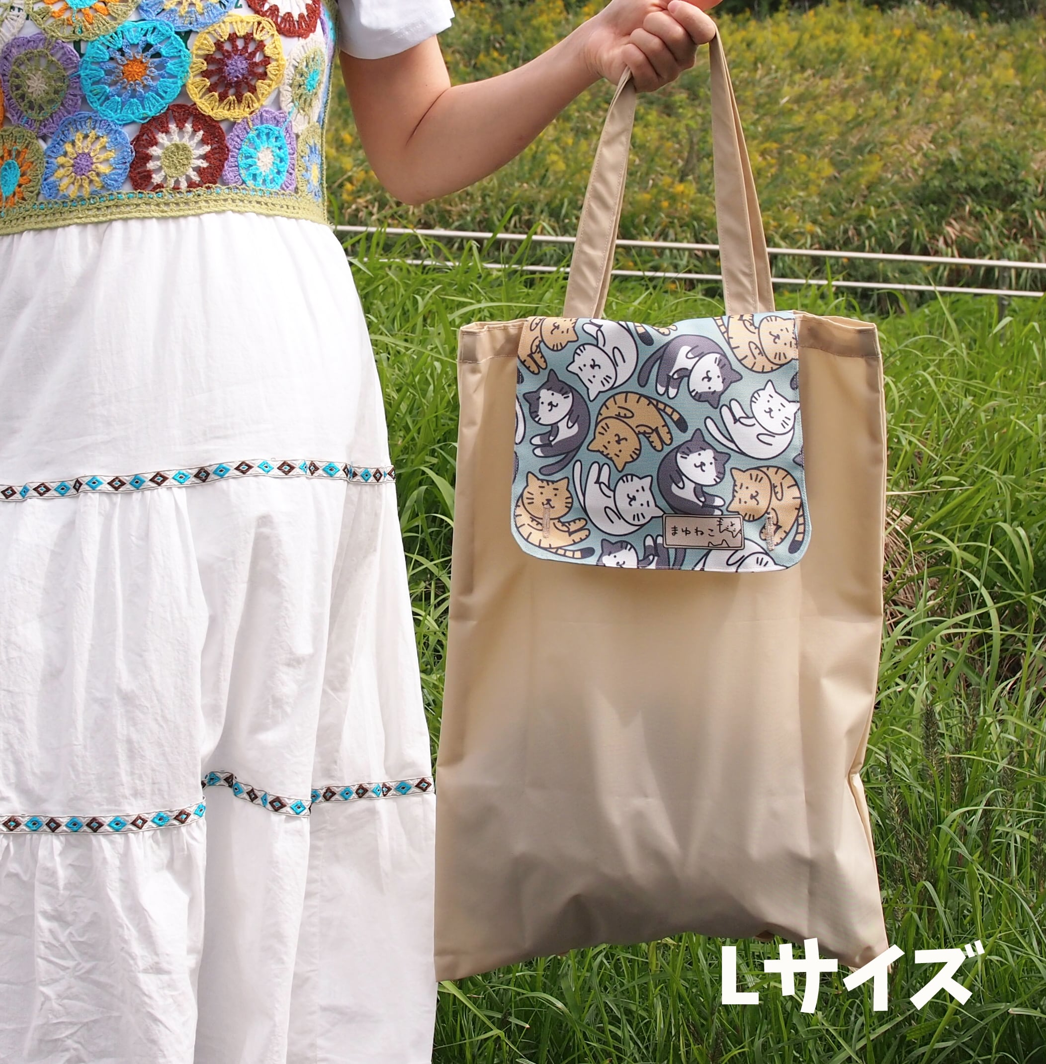 特許出願中 ぴたキャパトートバッグ 猫ブルー サイズ変更ができるエコバッグ