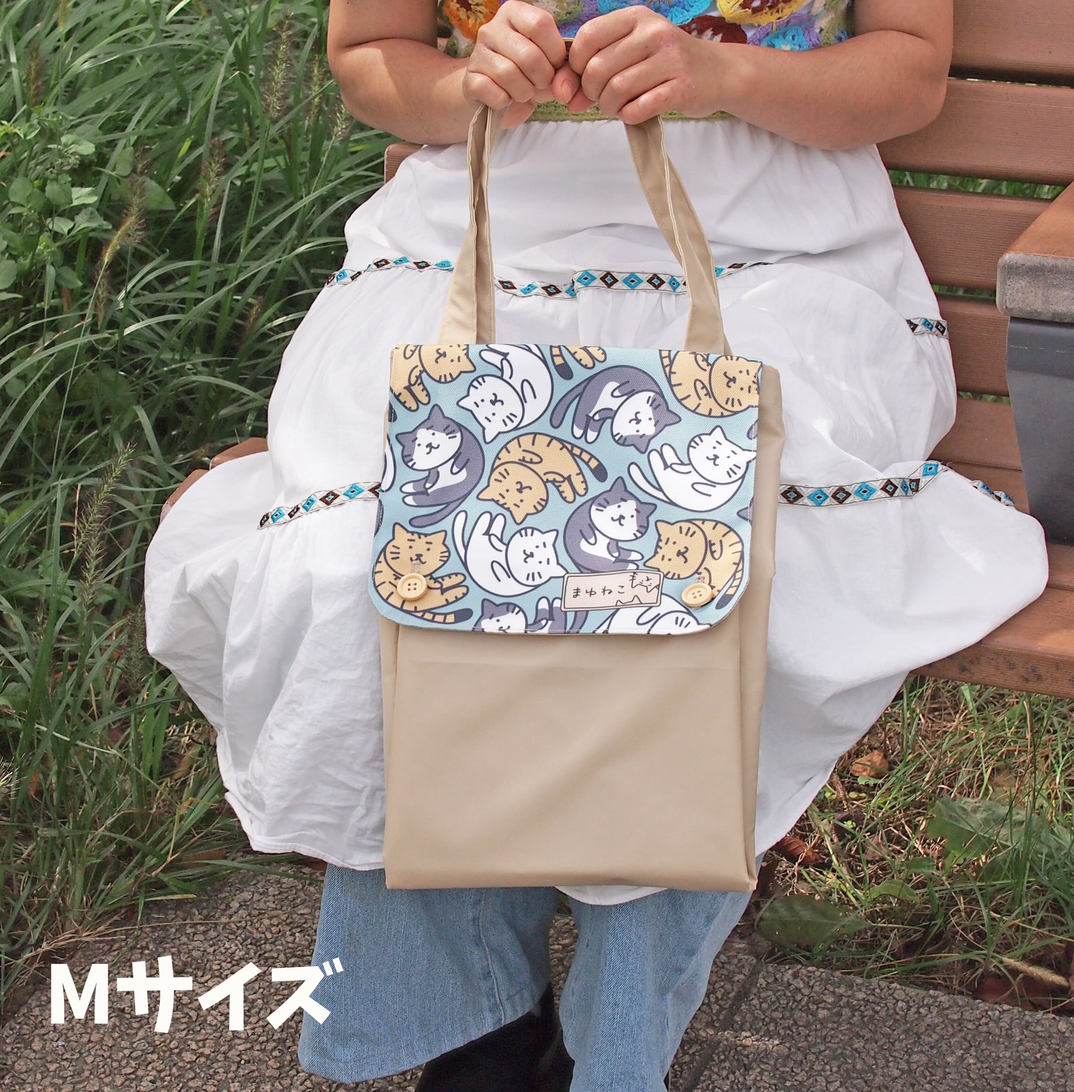 特許出願中 ぴたキャパトートバッグ 猫ブルー サイズ変更ができるエコバッグですもに