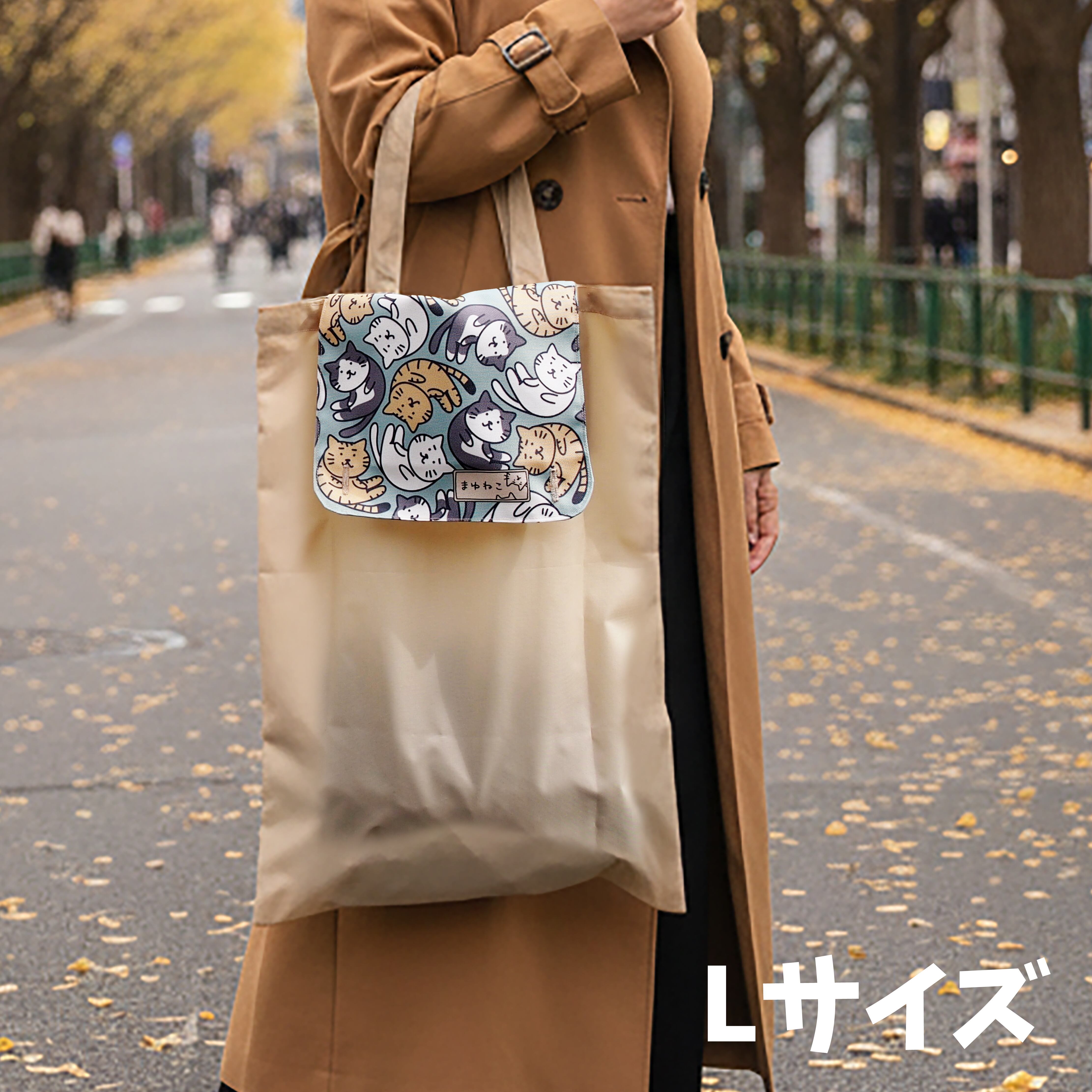 大きさが自由に変わる不思議エコバッグ ぴたキャパトート 猫ブルー