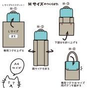 ②どんな大きさに変えても、可愛いトートバッグ形状でお使いいただけます。