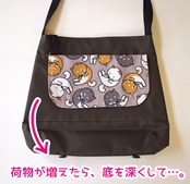 バッグ底についているボタンをフタに留めれば、底の深さを変えることができます。