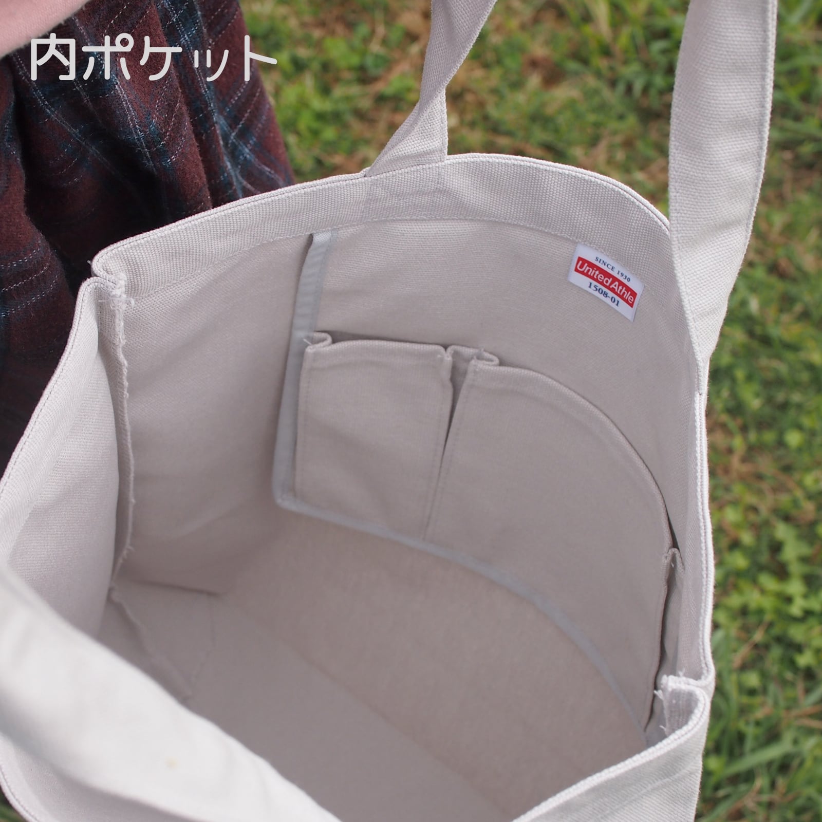 しっかりしたキャンバス地。14.3 ozなので、丈夫で安心♪レッスンバッグ、お買い物バッグなどなど色々な用途にお使いいただけます。