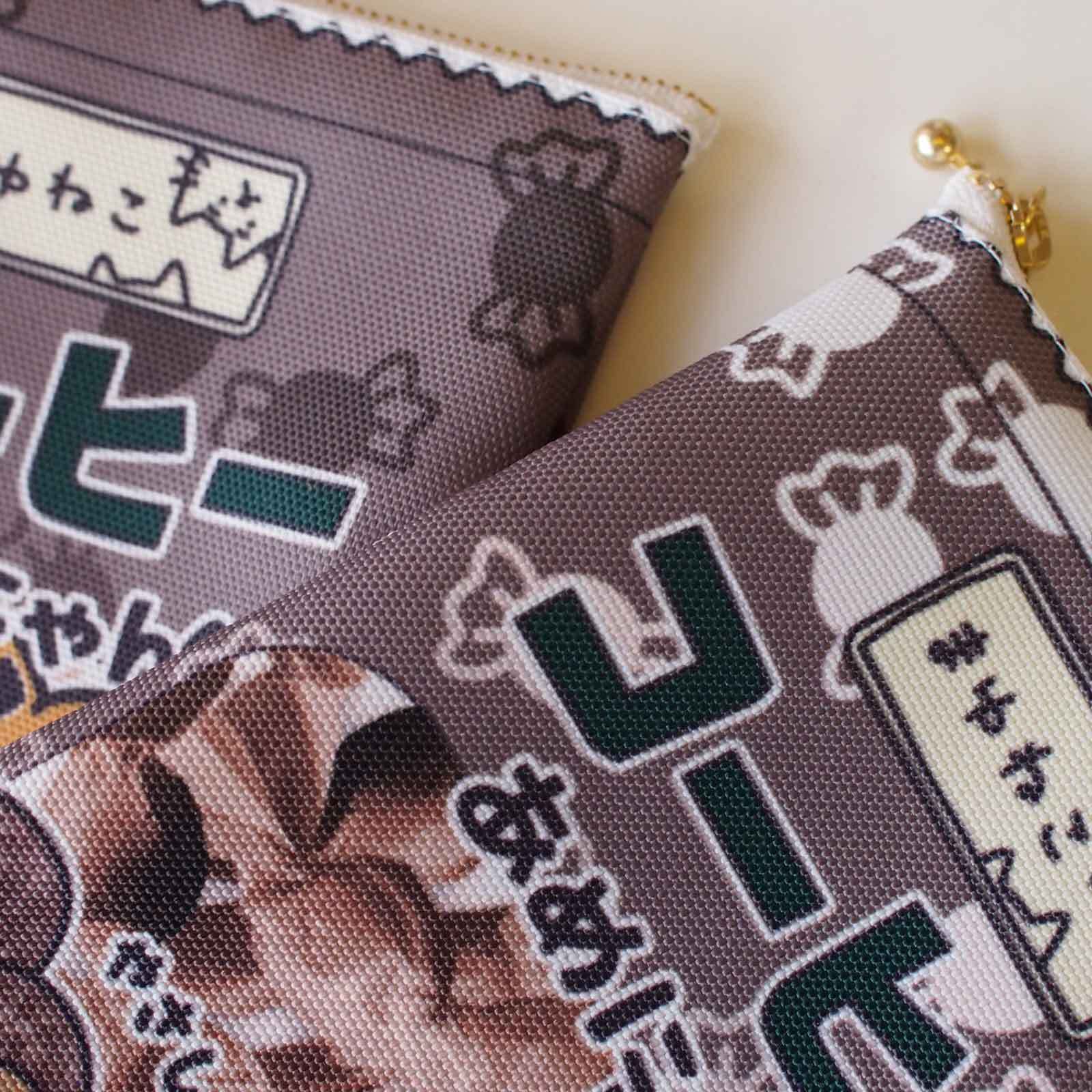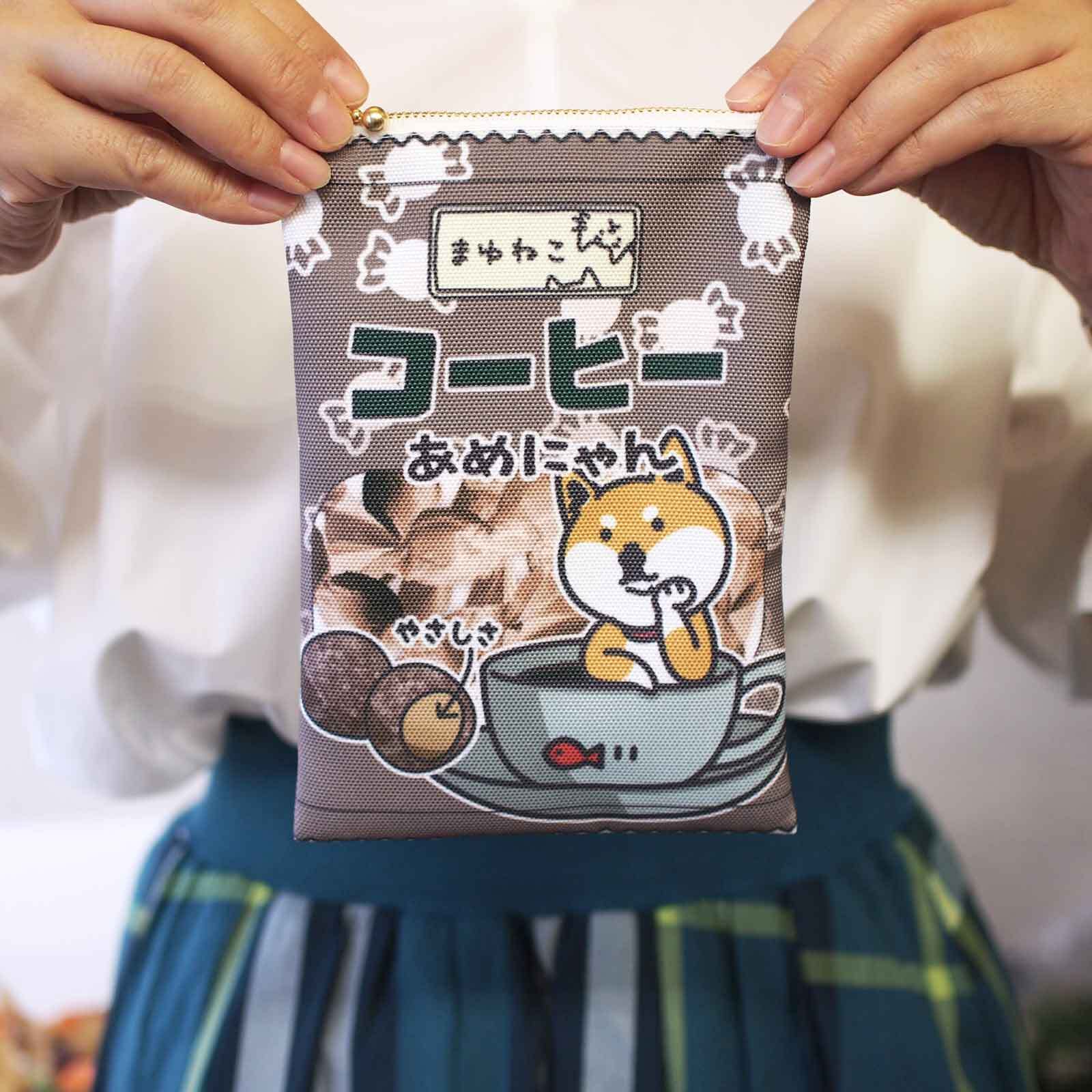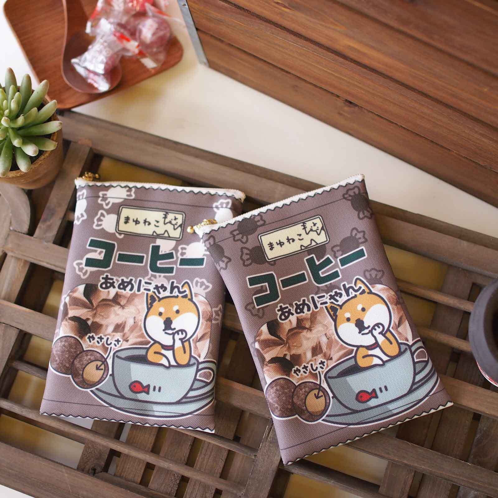 あめにゃん赤柴犬柄ポーチ キャンディ袋のような平ポーチ コーヒー ですもに