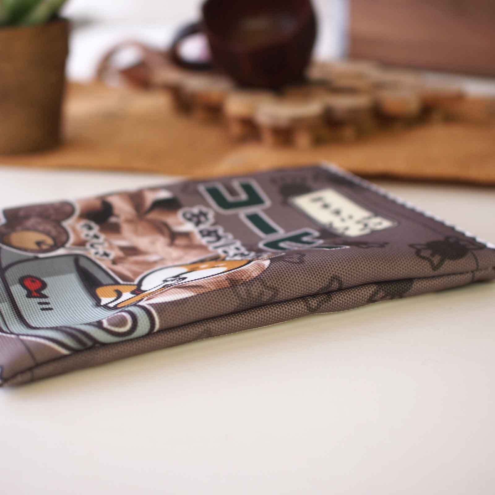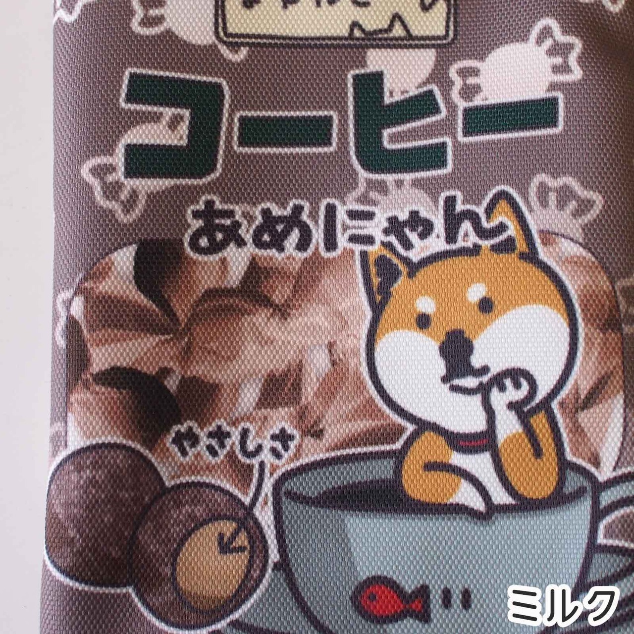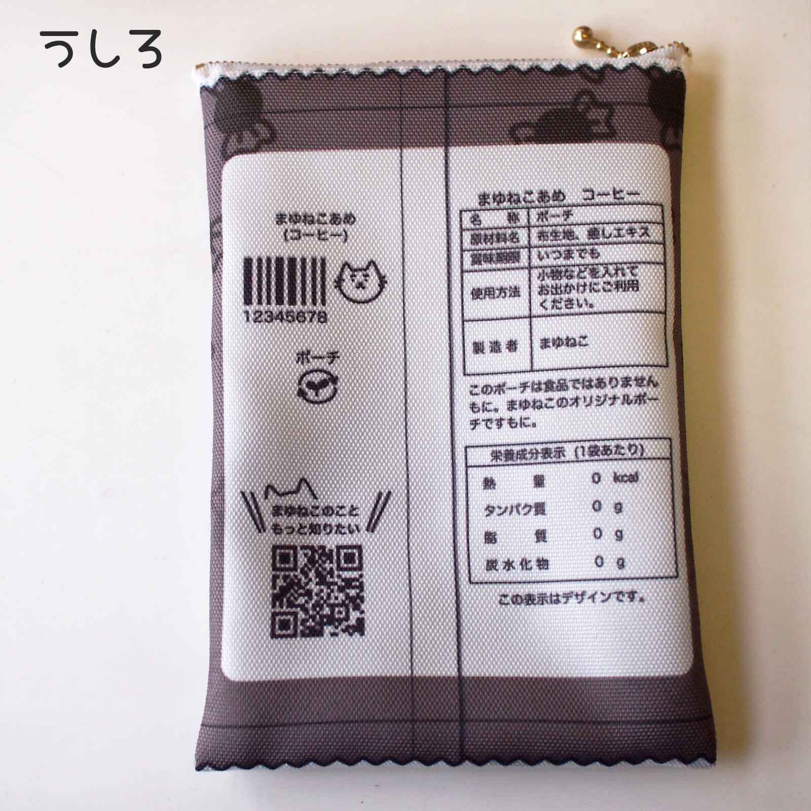 あめにゃん赤柴犬柄ポーチ キャンディ袋のような平ポーチ コーヒー ですもに