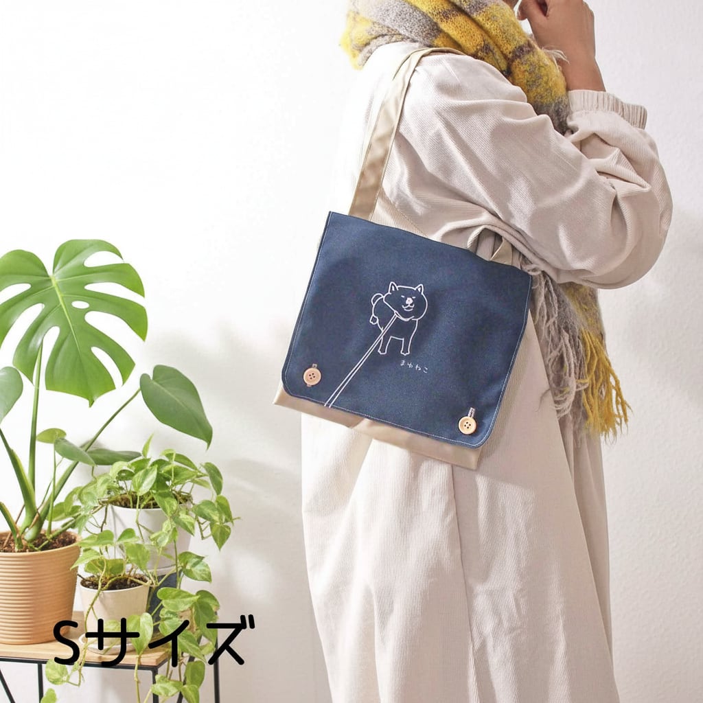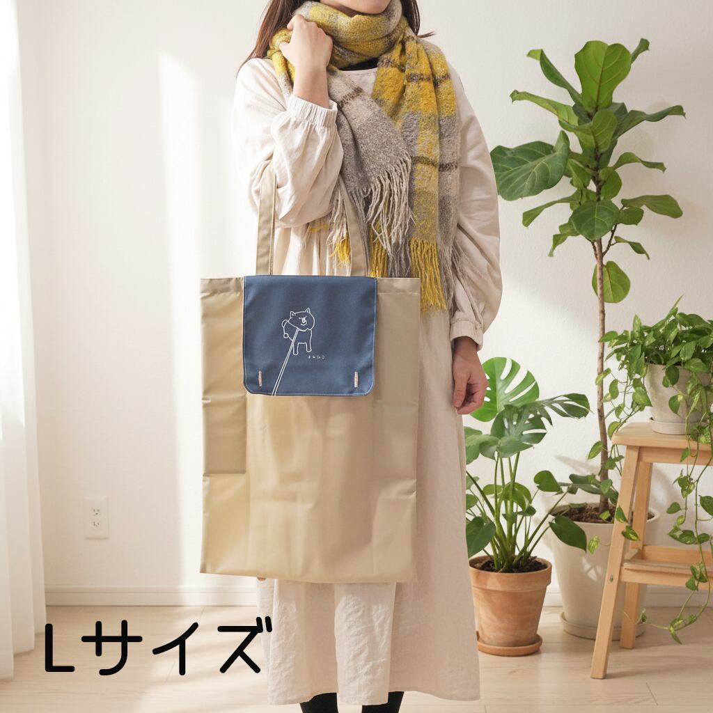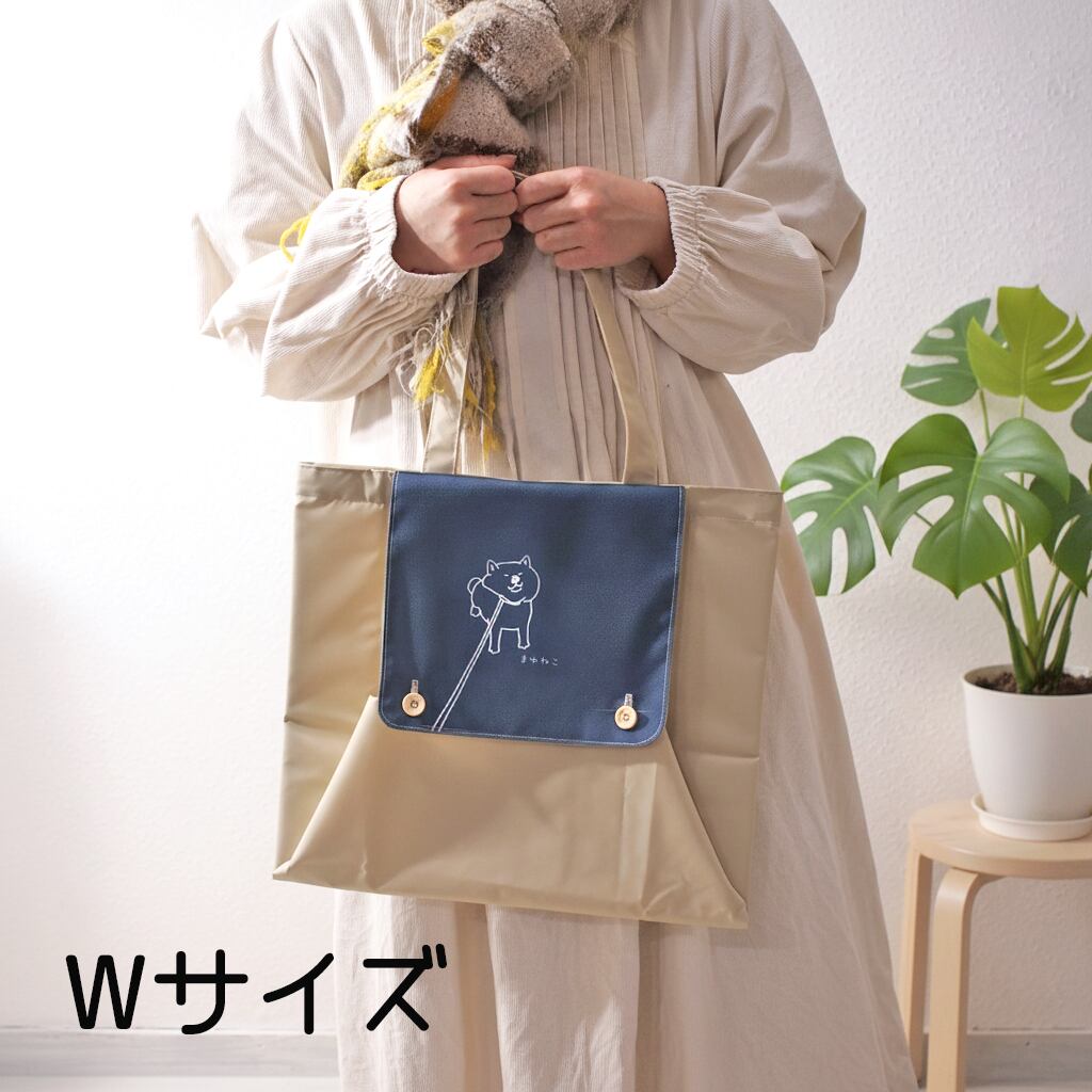 大きさが自由に変わる不思議トートバッグ ぴたキャパトート 柴犬 ネイビー