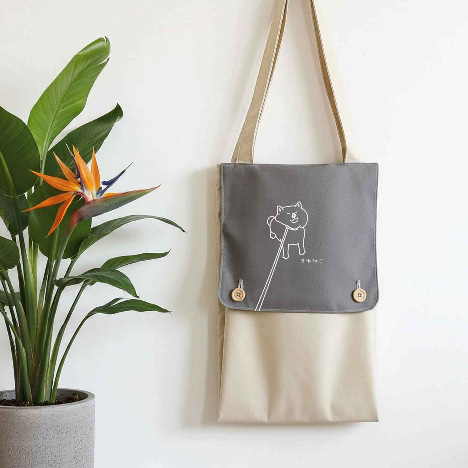 大きさが自由に変わる不思議トートバッグ ぴたキャパトート 柴犬 グレー