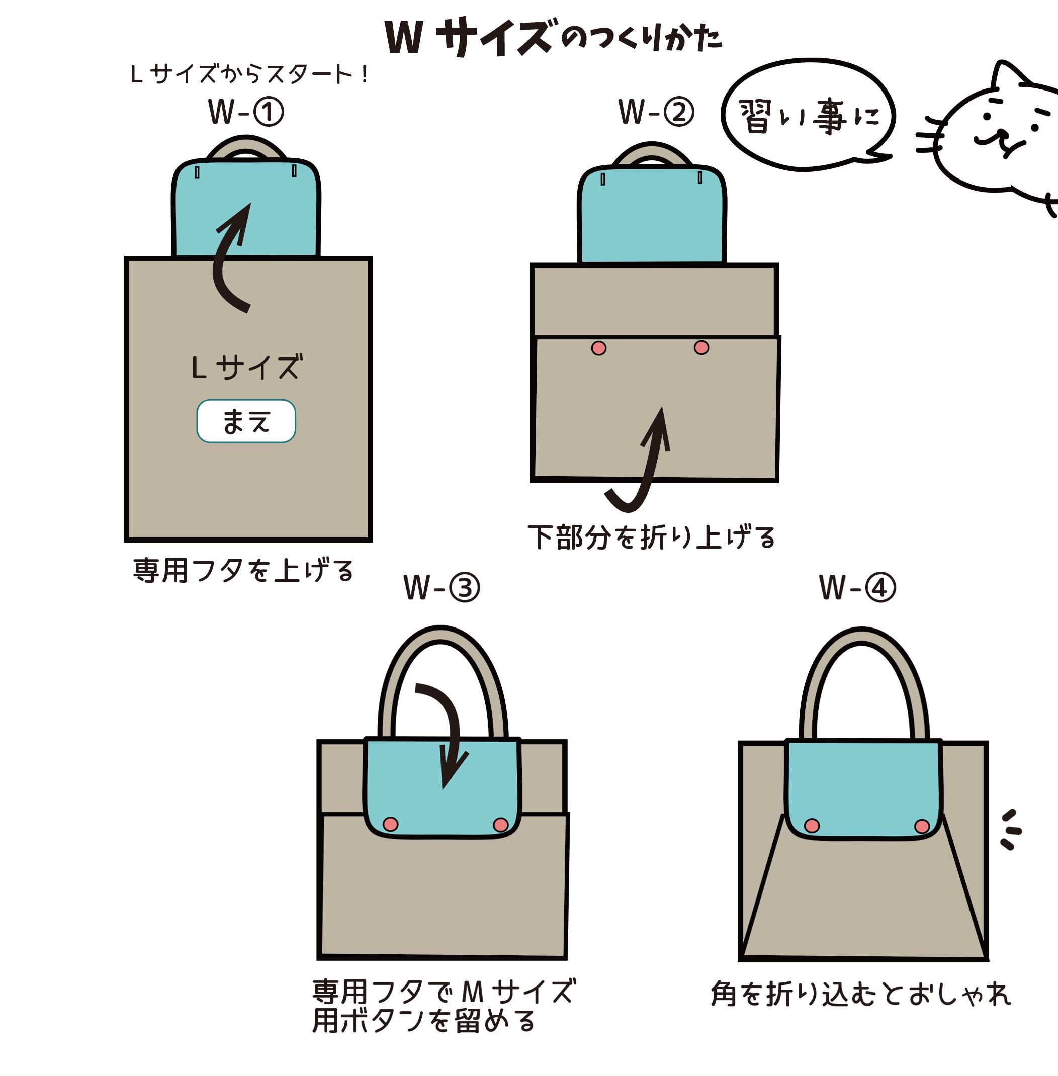 ②どんな大きさに変えても、可愛いトートバッグ形状でお使いいただけます。