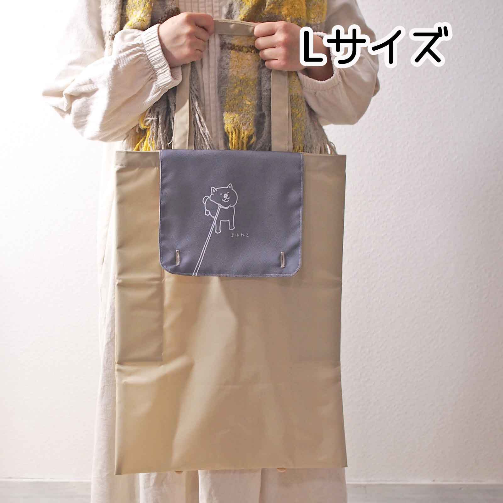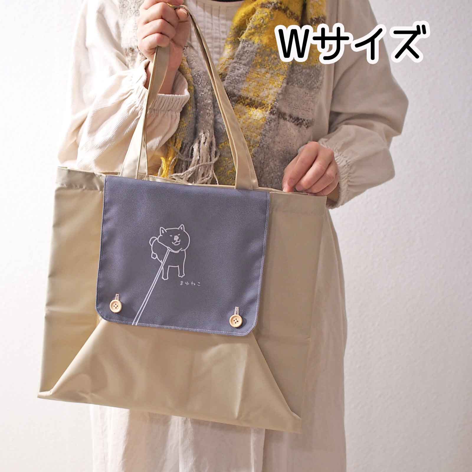 特許出願中 ぴたキャパトートバッグ 帰りたくない柴犬柄 グレー サイズ変更ができるエコバッグですもに
