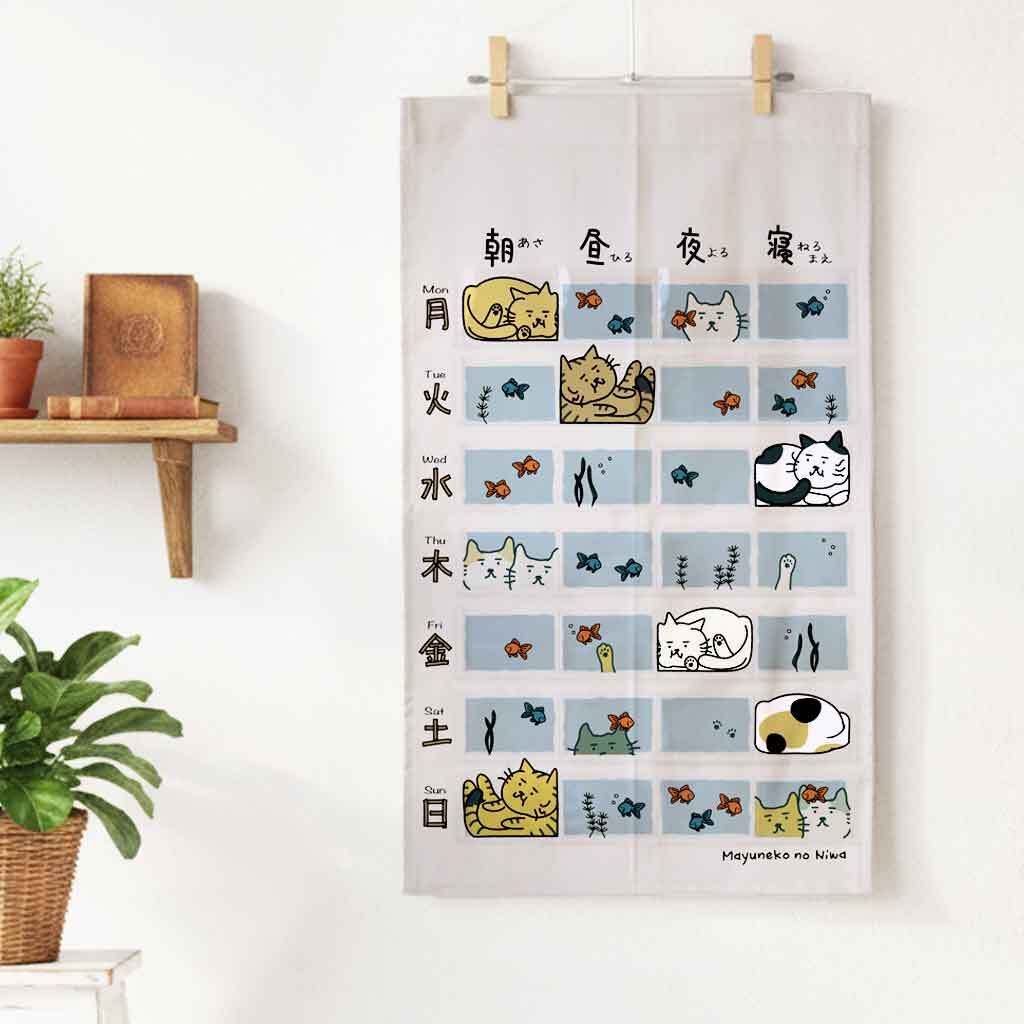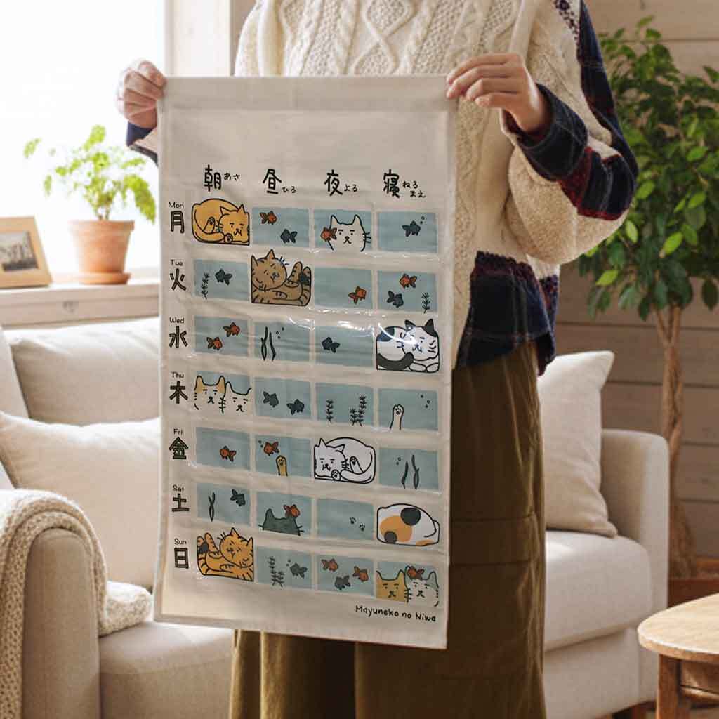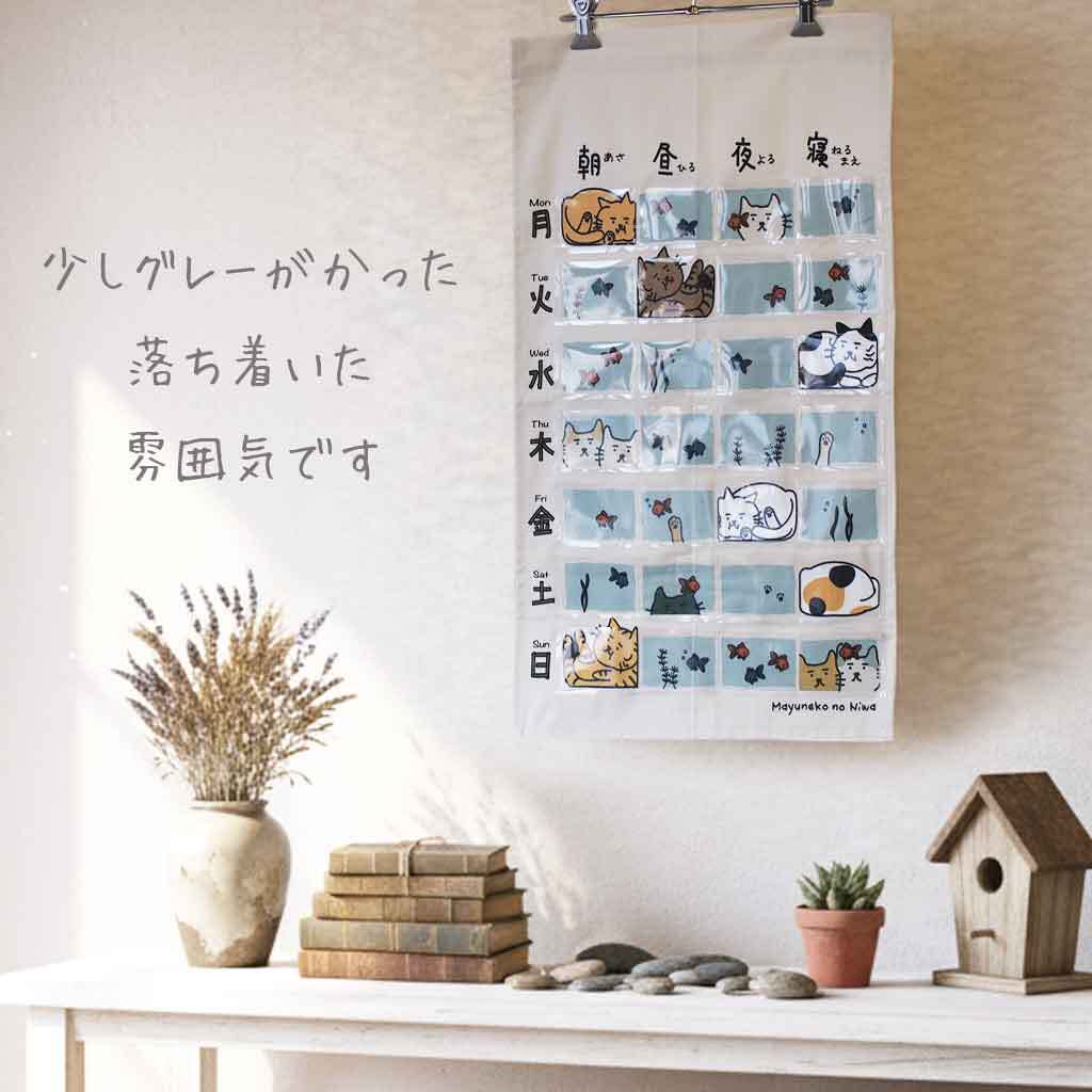 まゆねこ お薬カレンダー 水槽に金魚と猫いっぱい グレージュ 受注1ヶ月