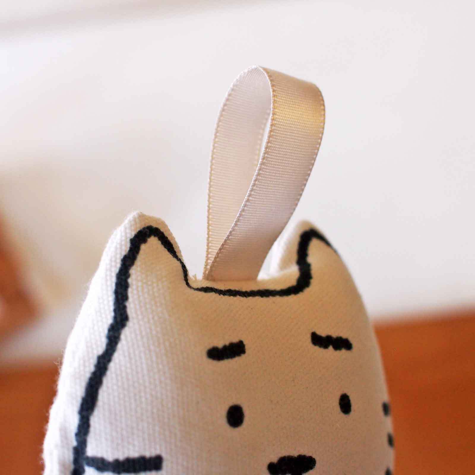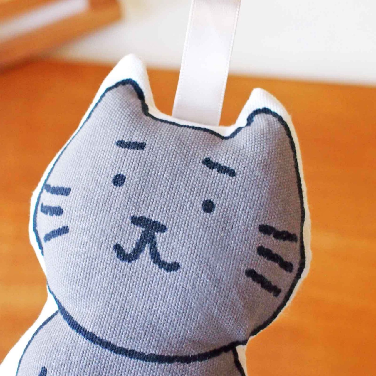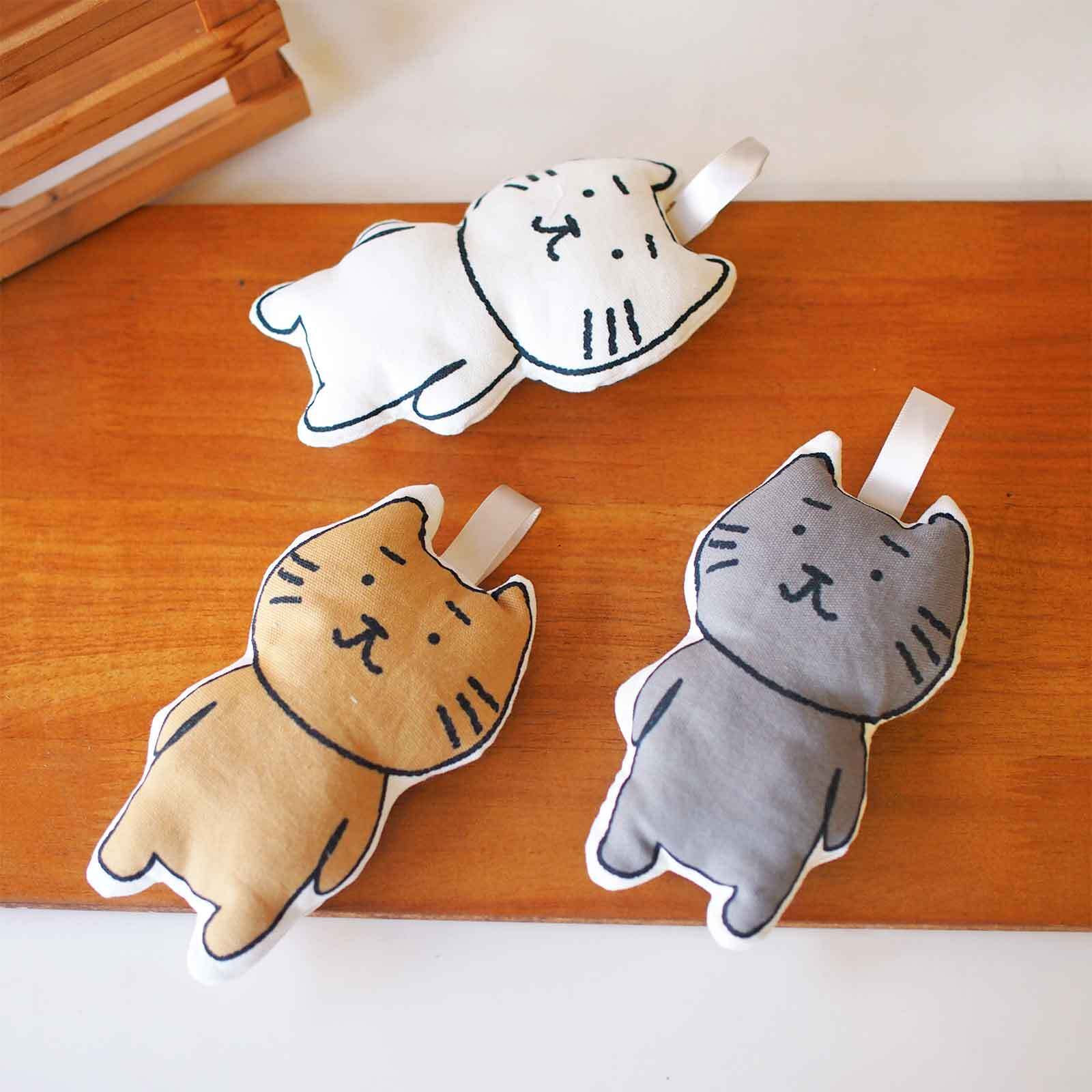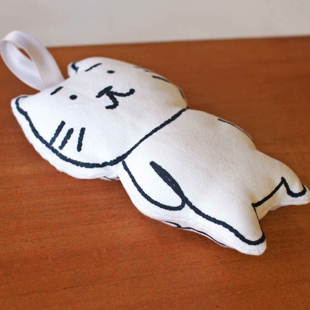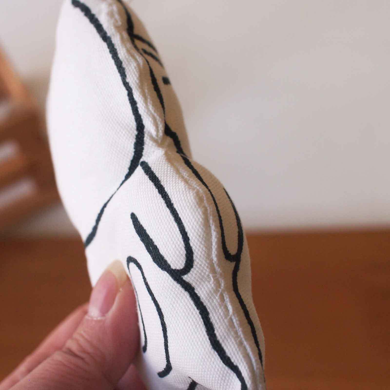 ■まゆねこのぬいぐるみです。まゆねこのプリント生地に綿を入れてぬいました。