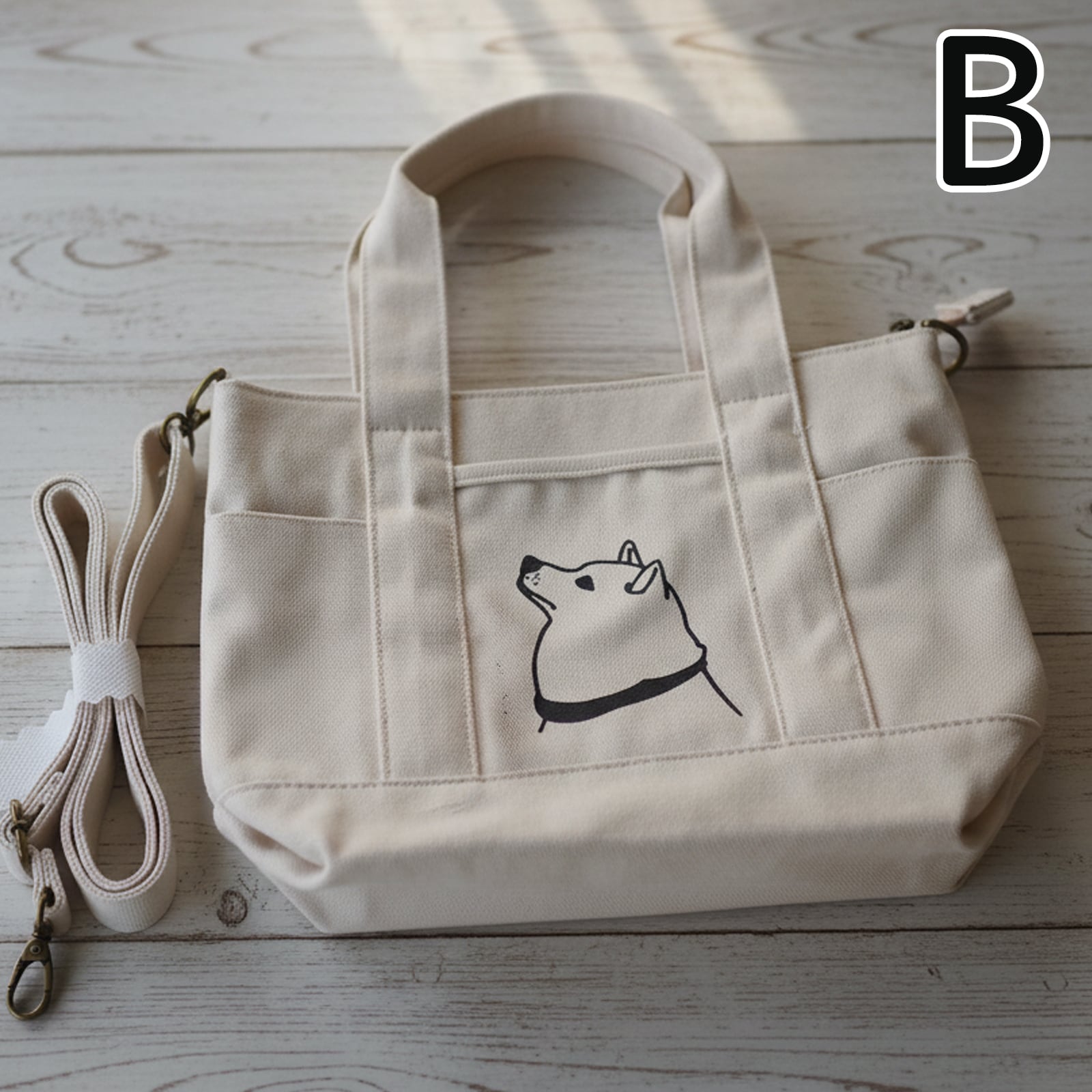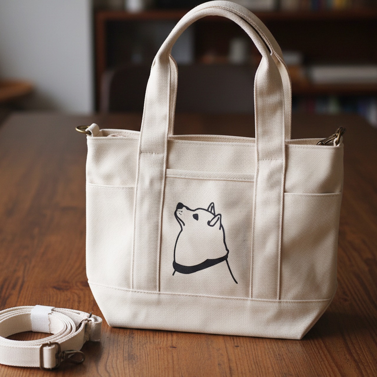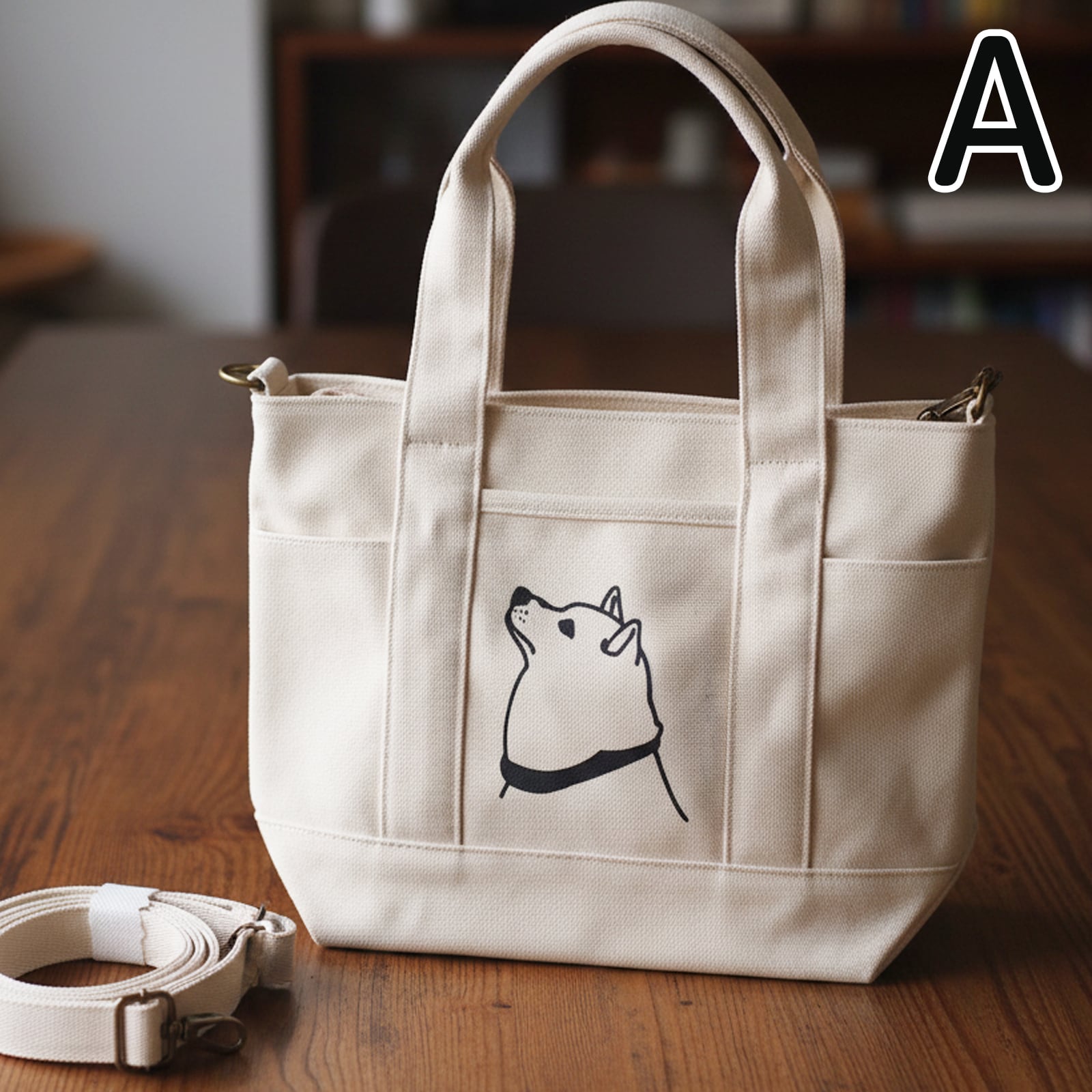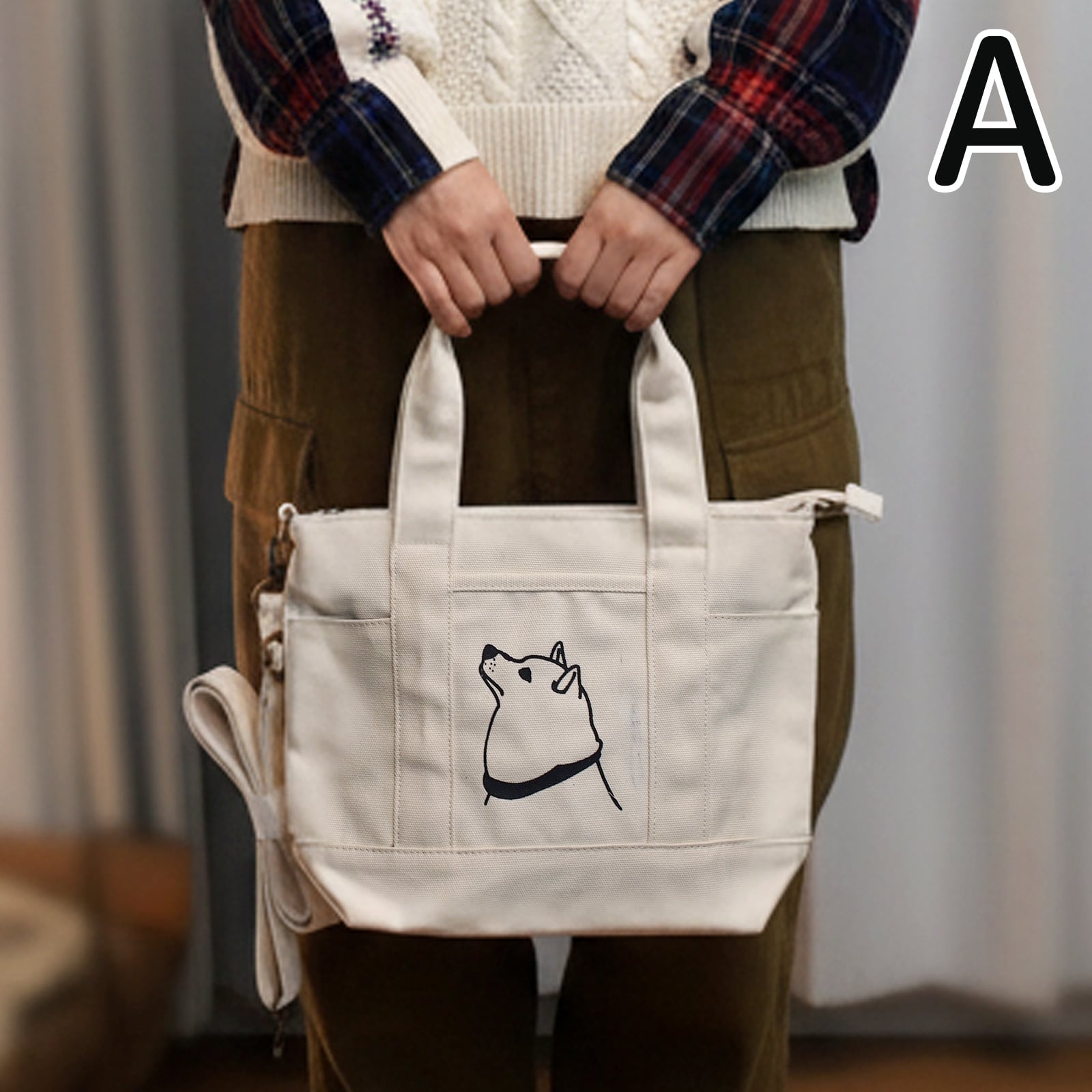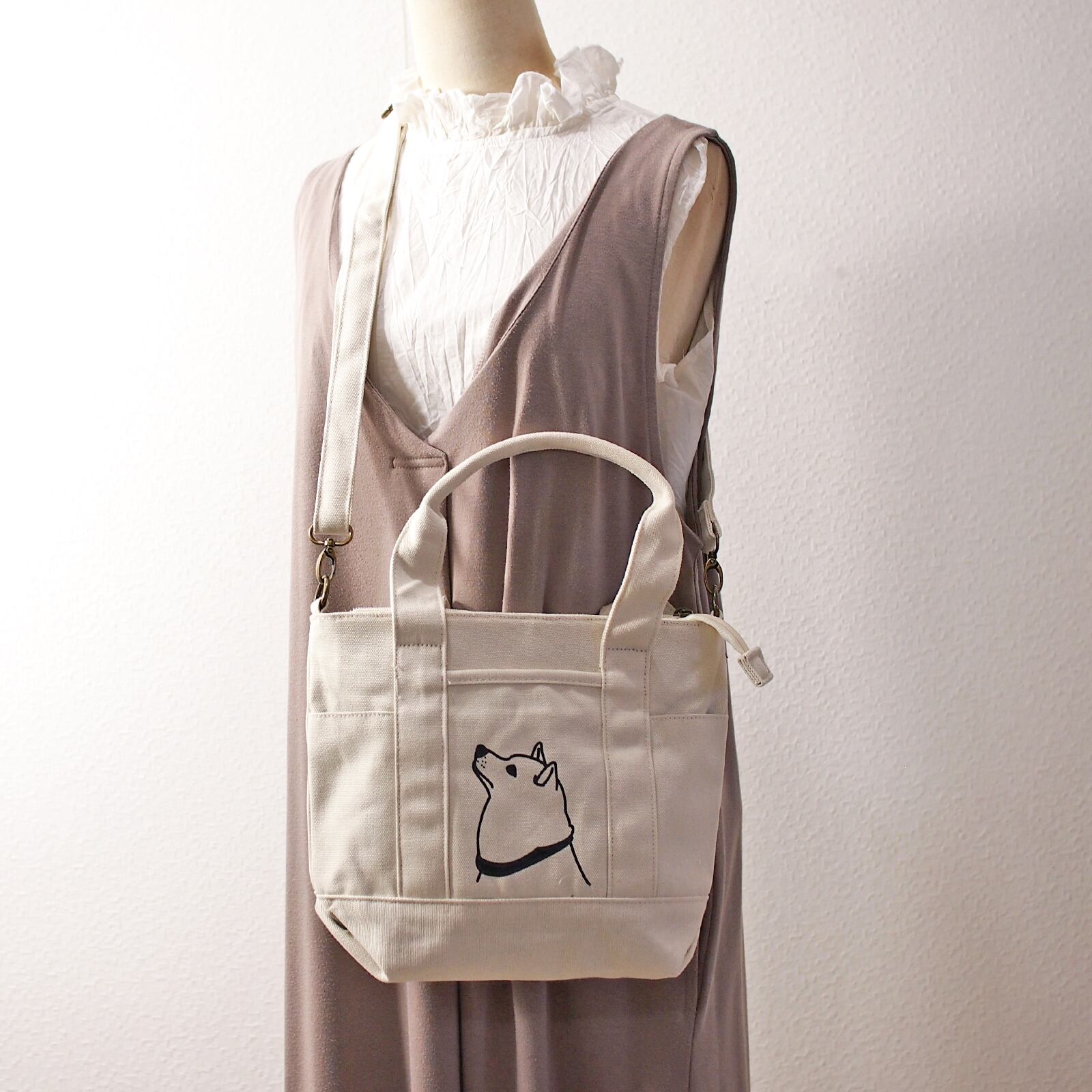 SALE (Sサイズ)A4 トートバッグ 柴犬便利ファスナー ポケット 2WAY帆布 犬 ですもに