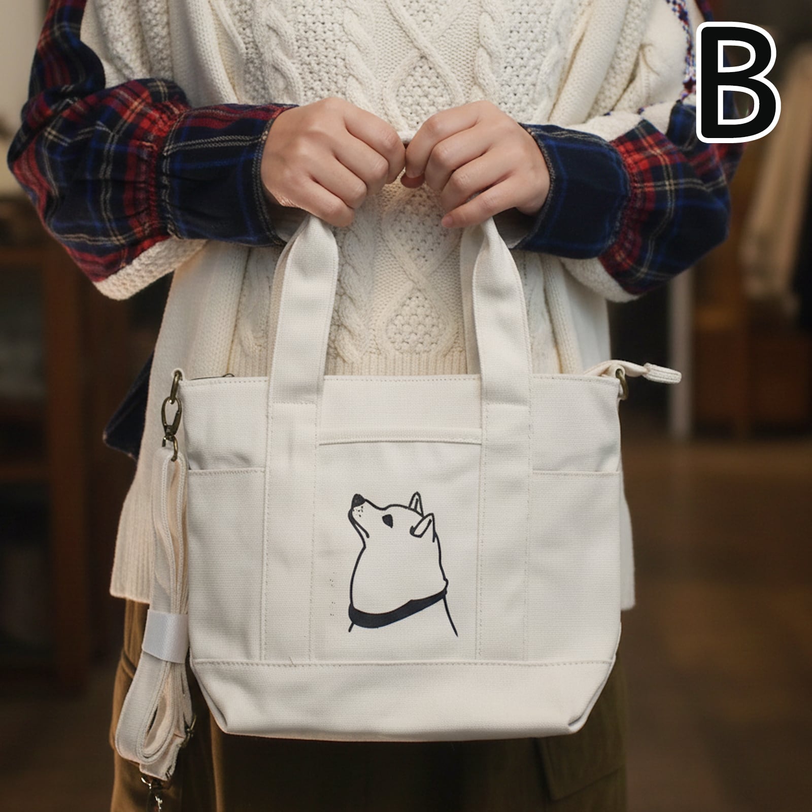 アウトレット A4トートバッグ柴犬S 白 2WAY ショルダー