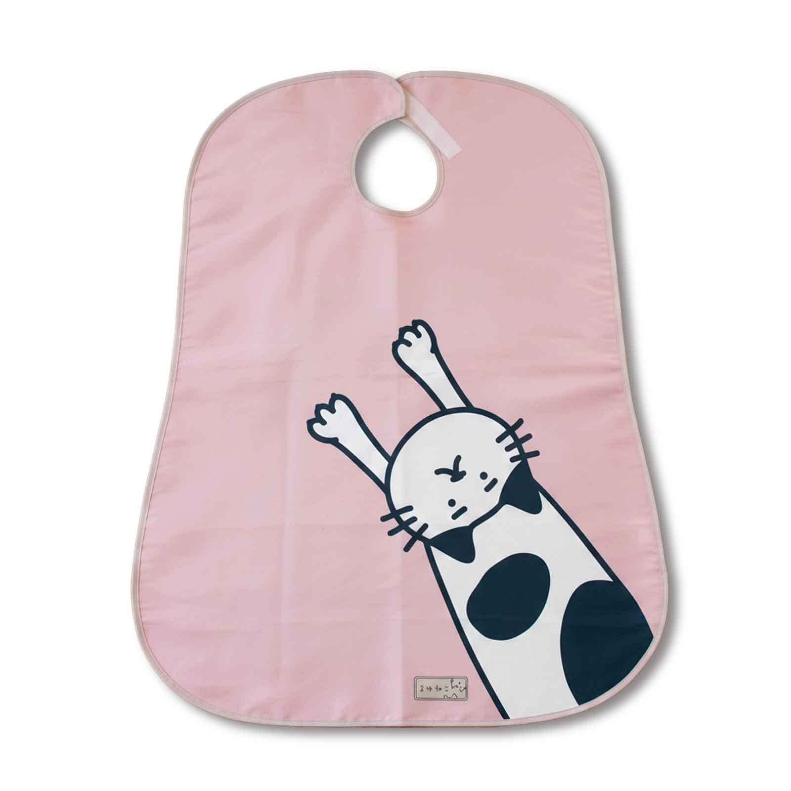 猫ちゃんが抱きつく可愛い 大人用スタイ ピンク 大きめ 介護用 病院 介護用エプロン 食事エプロン 洋服ガード 介護用品 おしゃれ