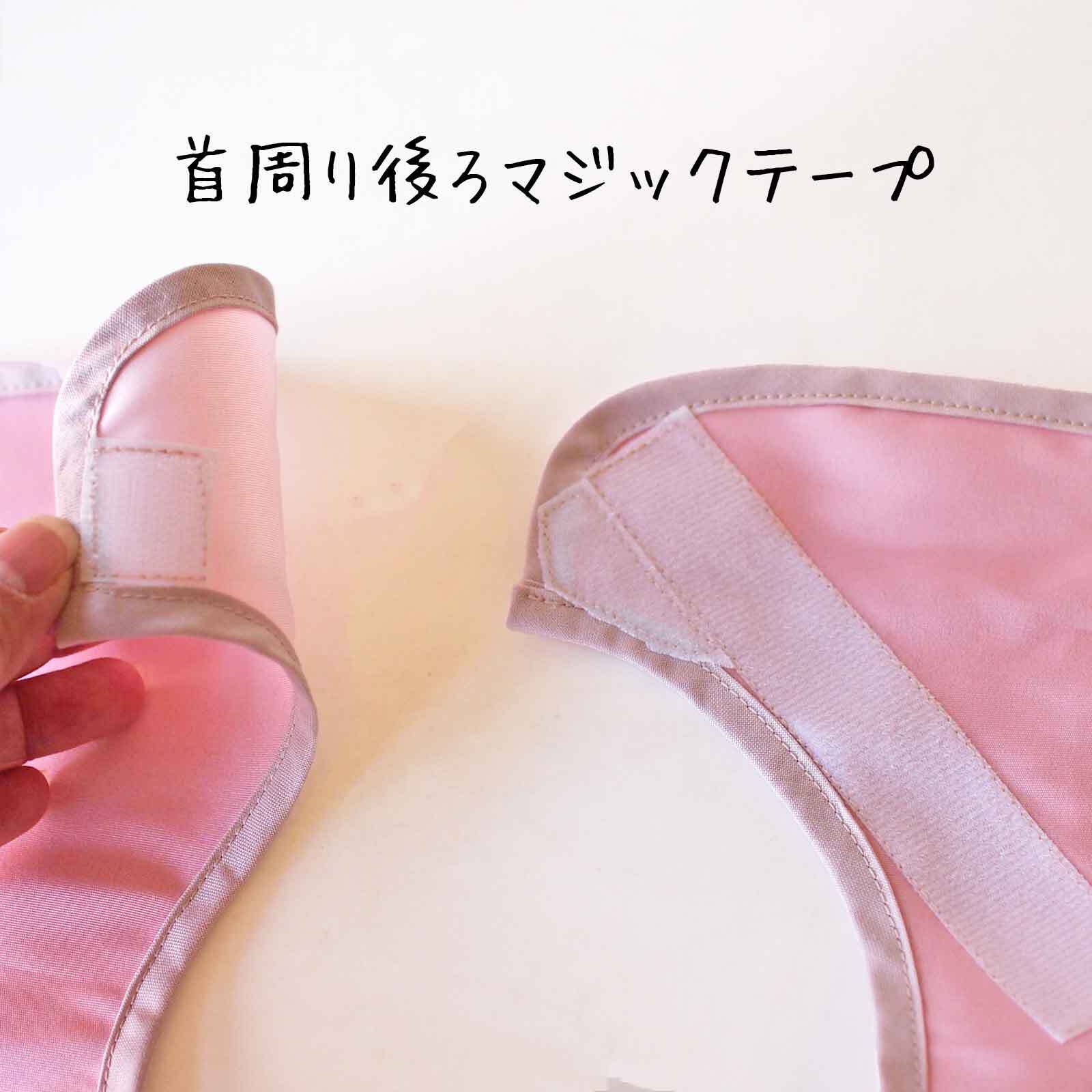 ■留め具はやわらかいマジックテープで痛くなりにくいです。首周り大きさ調節できます。