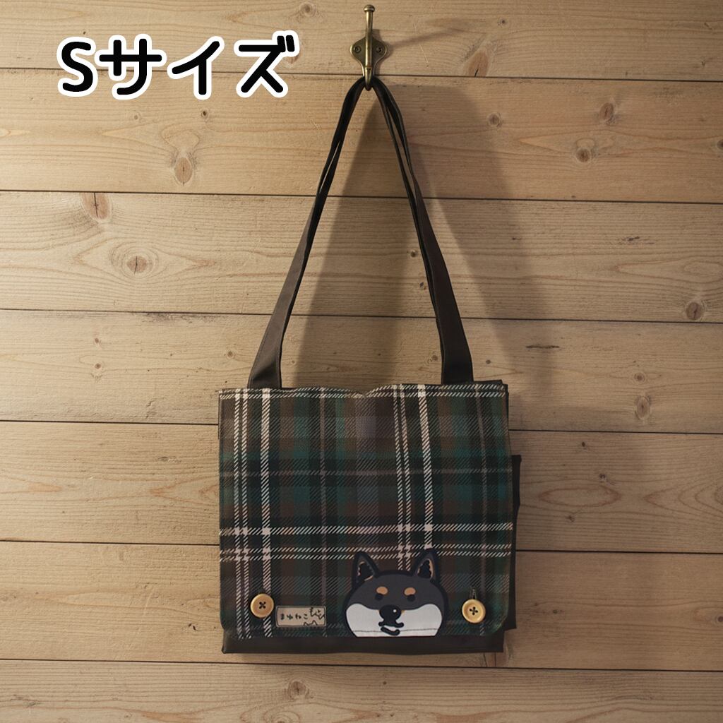 大きさが自由に変わる不思議トートバッグ ぴたキャパトート 黒柴犬 チェック柄