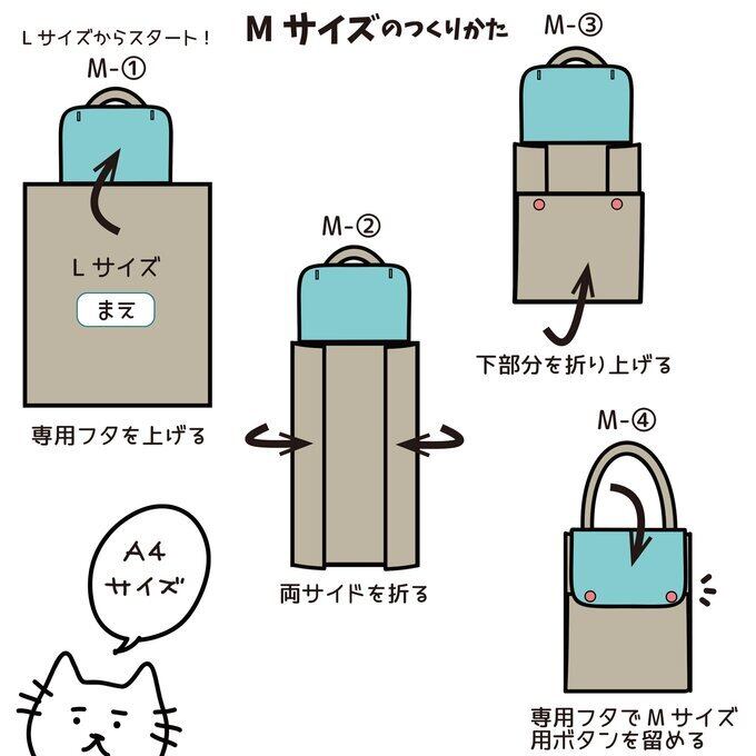 ②どんな大きさに変えても、可愛いトートバッグ形状でお使いいただけます。