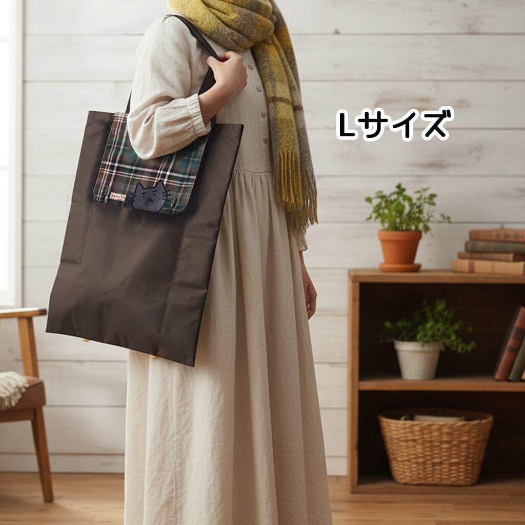 大きさが自由に変わる不思議トートバッグ ぴたキャパトート 黒猫 チェック柄 サイズ変更ができるエコバッグですもに