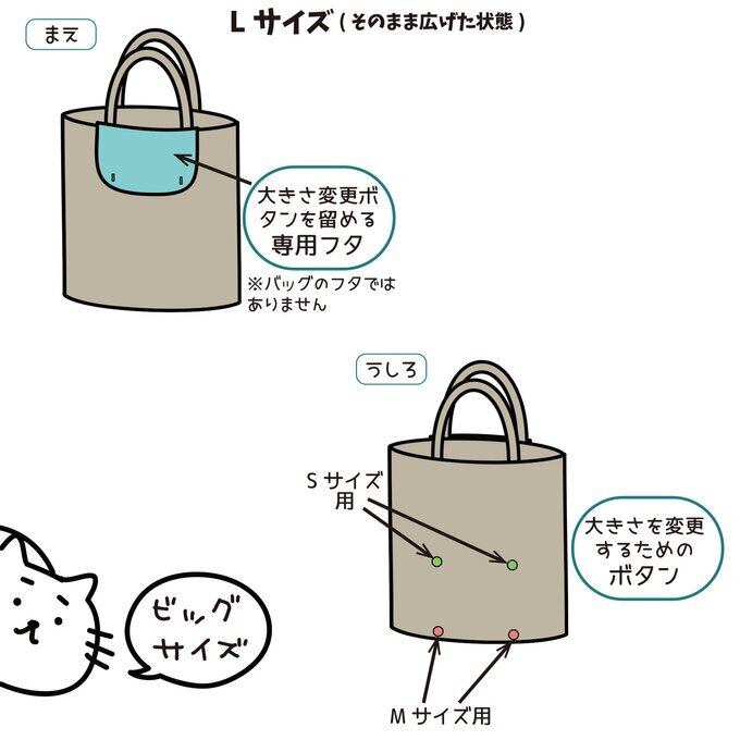②どんな大きさに変えても、可愛いトートバッグ形状でお使いいただけます。