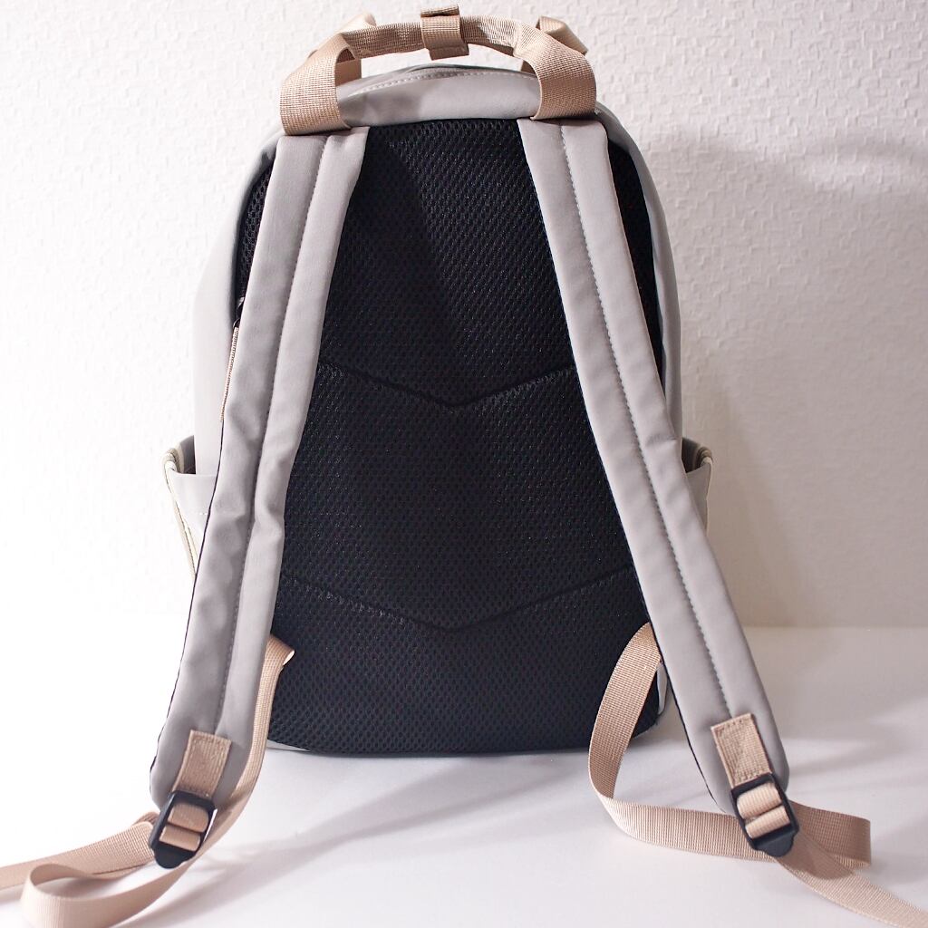 猫リュック グレーベージュ色 ねこ 内側ポケット 丸型 グレー リュックサック